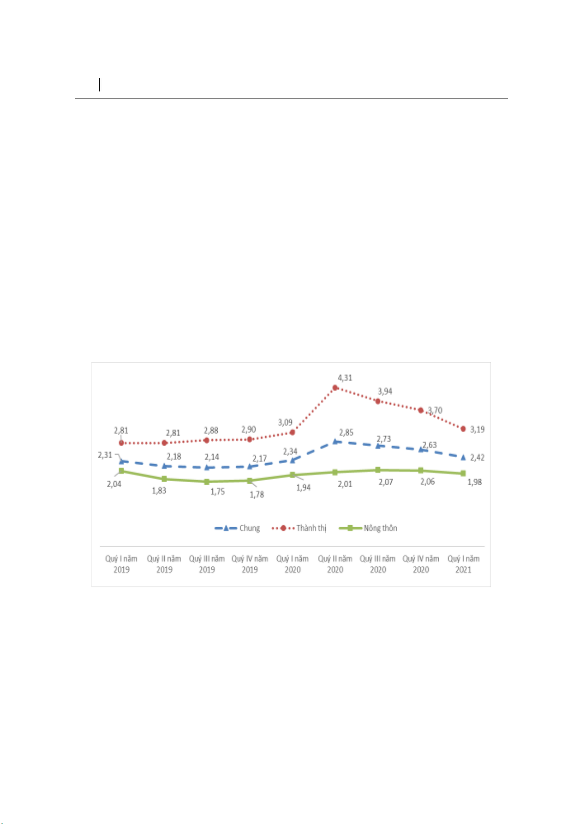 Hình 2: Tỷ lệ thất nghiệp trong độ tuổi lao động theo thành thị, nông thôn, cc quý