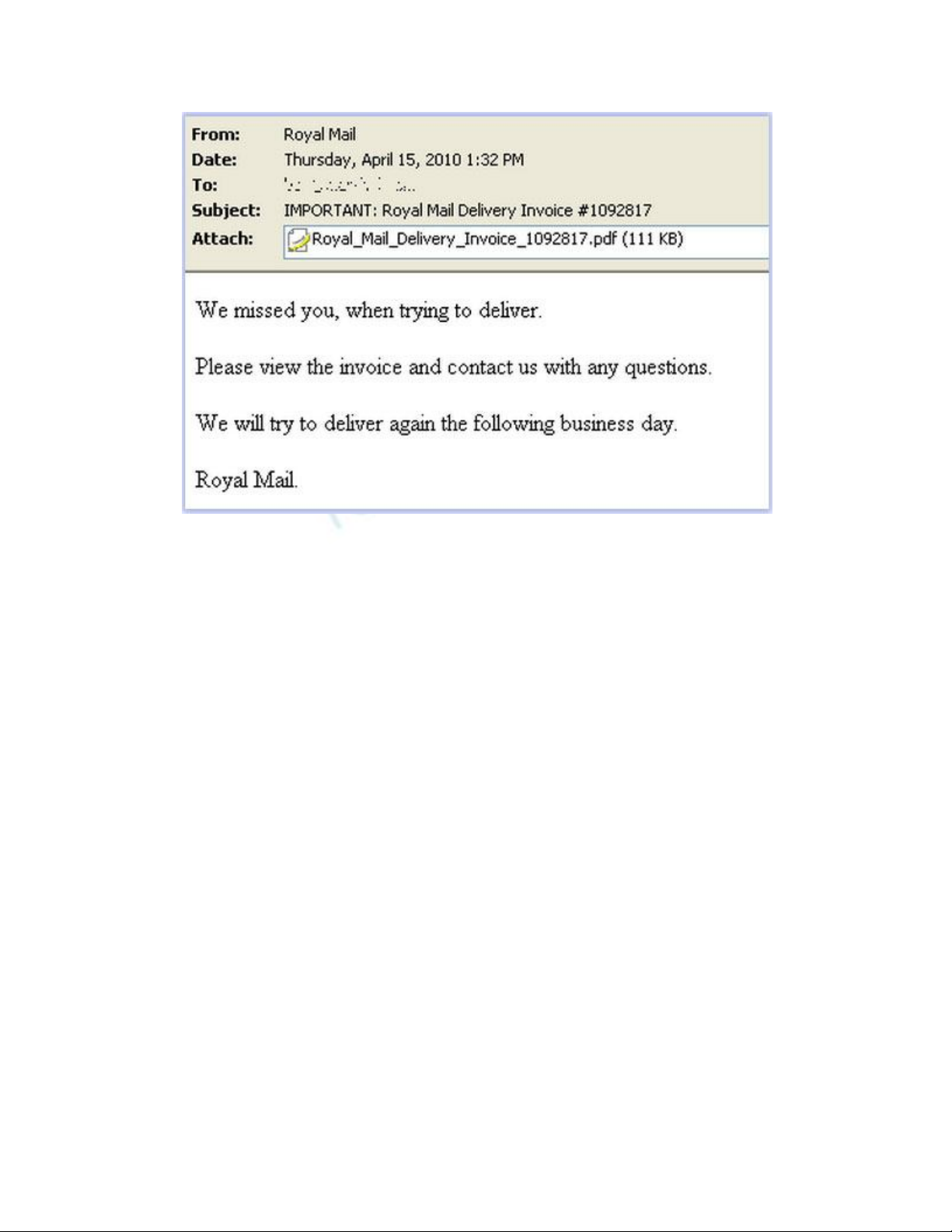 Email có đính kèm tập tin PDF đã nhúng mã độc (Ảnh: M86 Security)