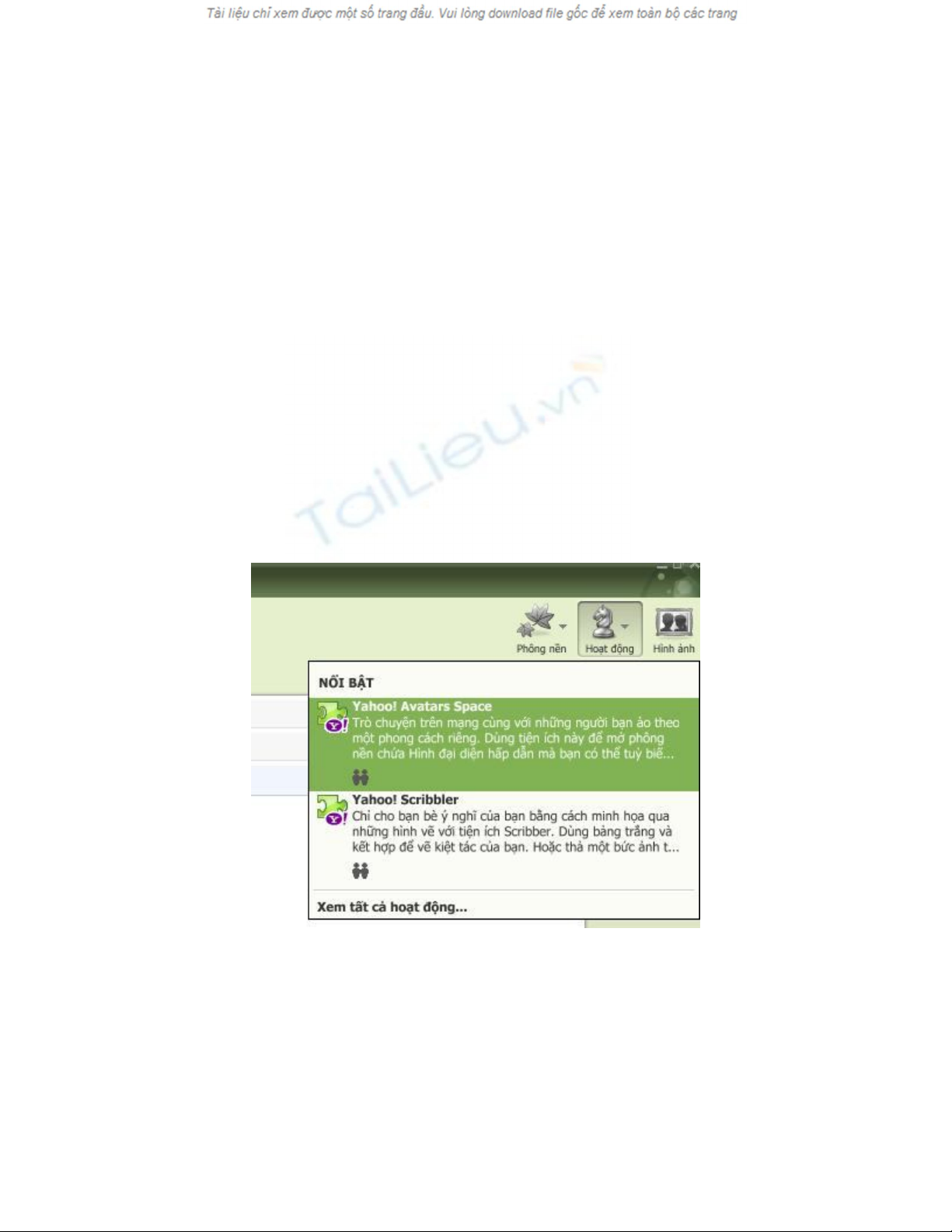 avatar.yahoo.com. Tại cửa sổ chat, click vào "Hoạt