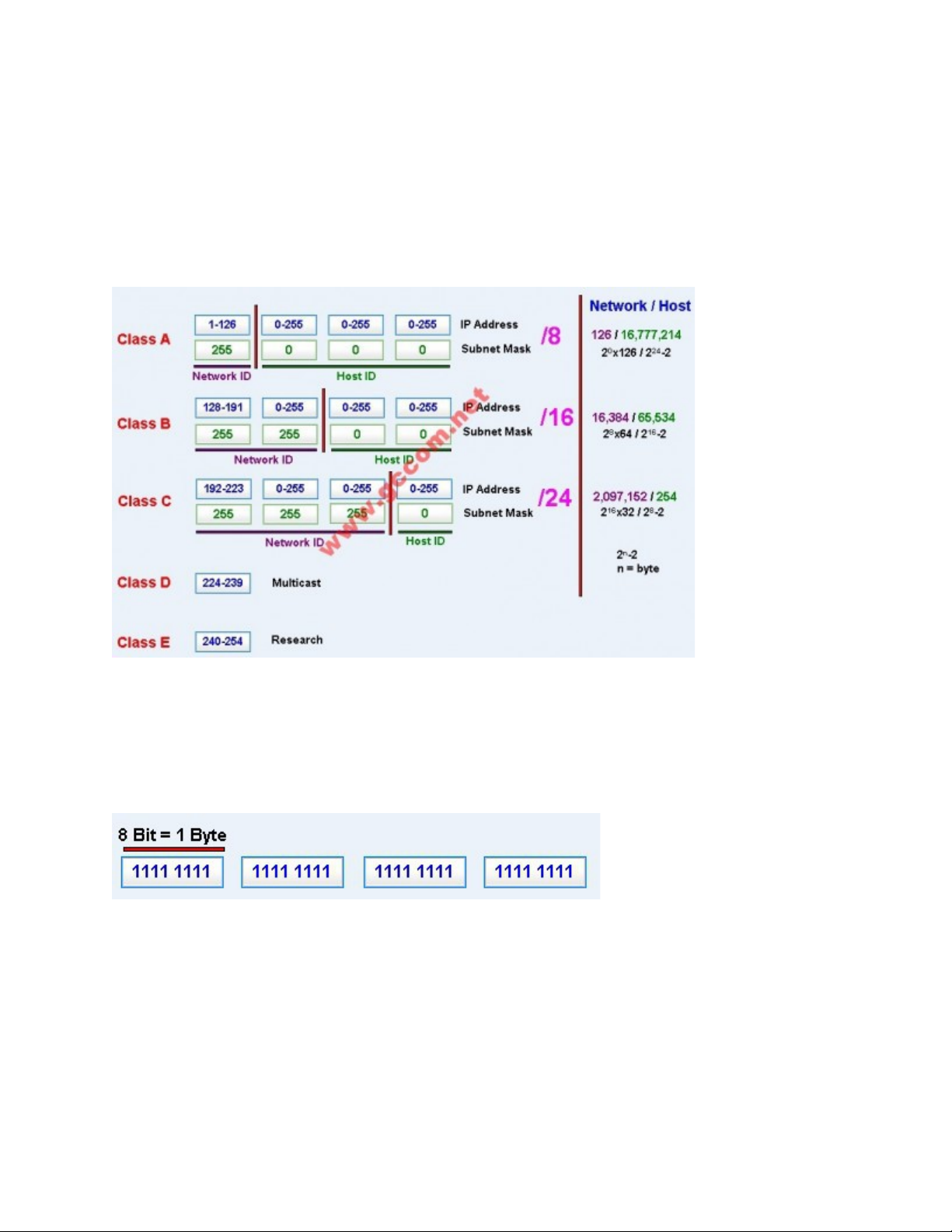 Mỗi số IP khi được viết dưới dạng nhị phân sẽ bao gồm 4 Byte nghĩa là 32 bit với một địa chỉ IP