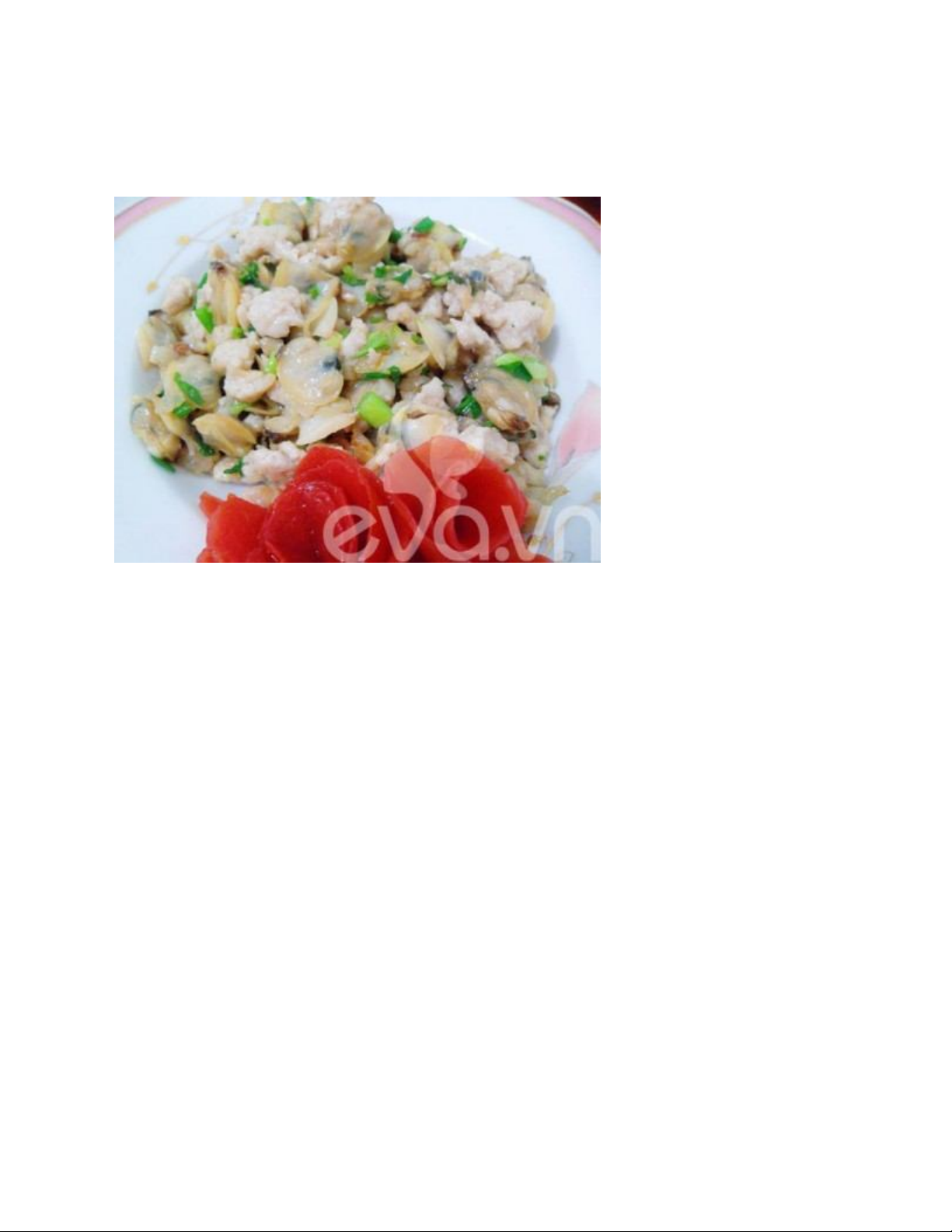 Cho ngao xào thịt băm ra đĩa và ăn cùng