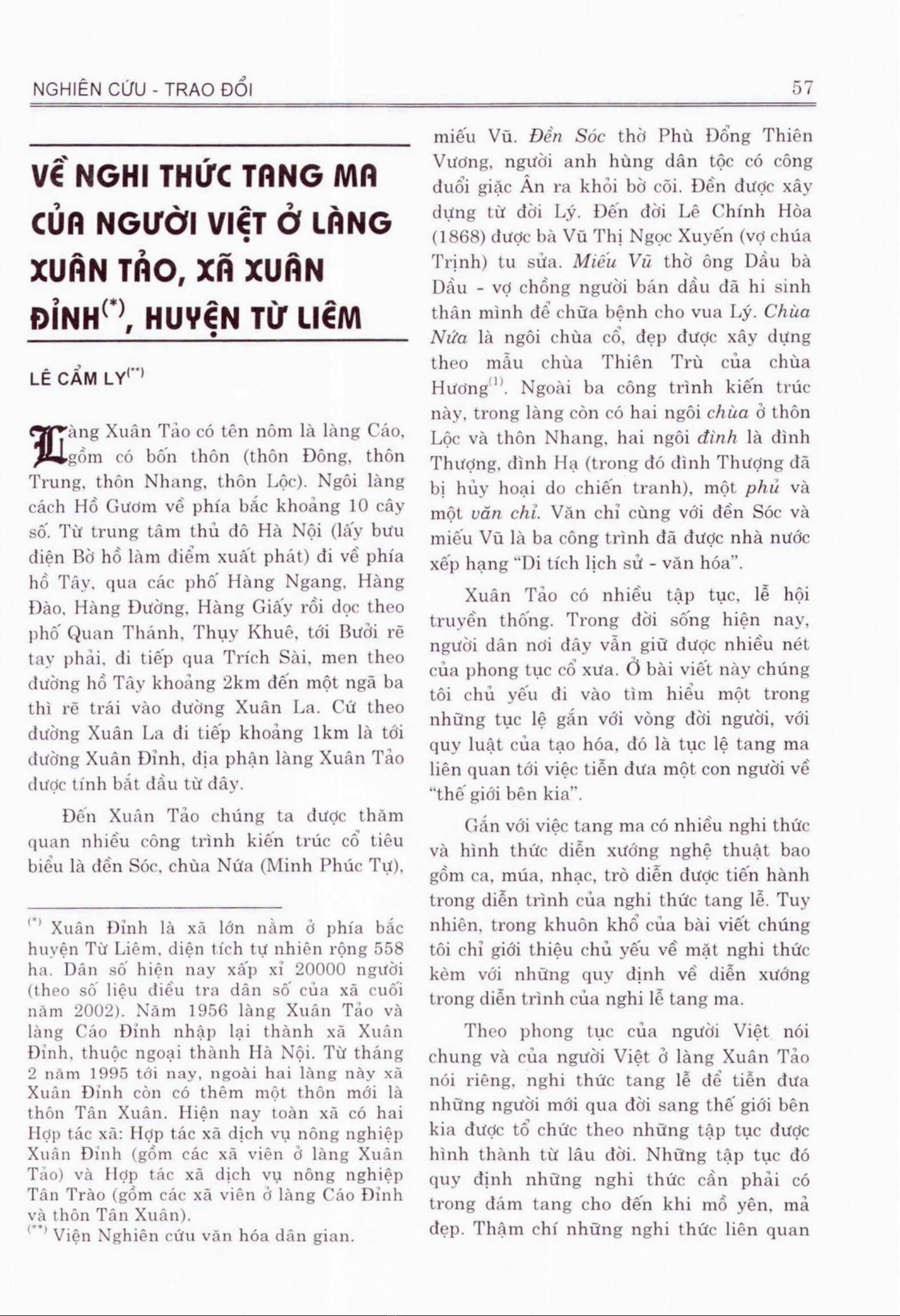 Tài liệu Về nghi thức tang ma của người Việt ở làng Xuân Tảo, xã Xuân Định, huyện Từ Liêm là một tài liệu nghiên cứu về các nghi thức tang ma tại làng Xuân Tảo, phía trăm những giá trị văn hóa và tâm linh của cộng đồng. Nghi thức tang ma không chỉ chỉ thể hiện lòng tôn kính đối với người đã khuất mà còn gắn kết các thành viên trong gia đình và làng xóm. Qua những hoạt động như lễ nhập quan, lễ viếng và tiễn đưa, người dân thể hiện sự chia sẻ nỗi buồn và động viên nhau vượt quá mất mát.