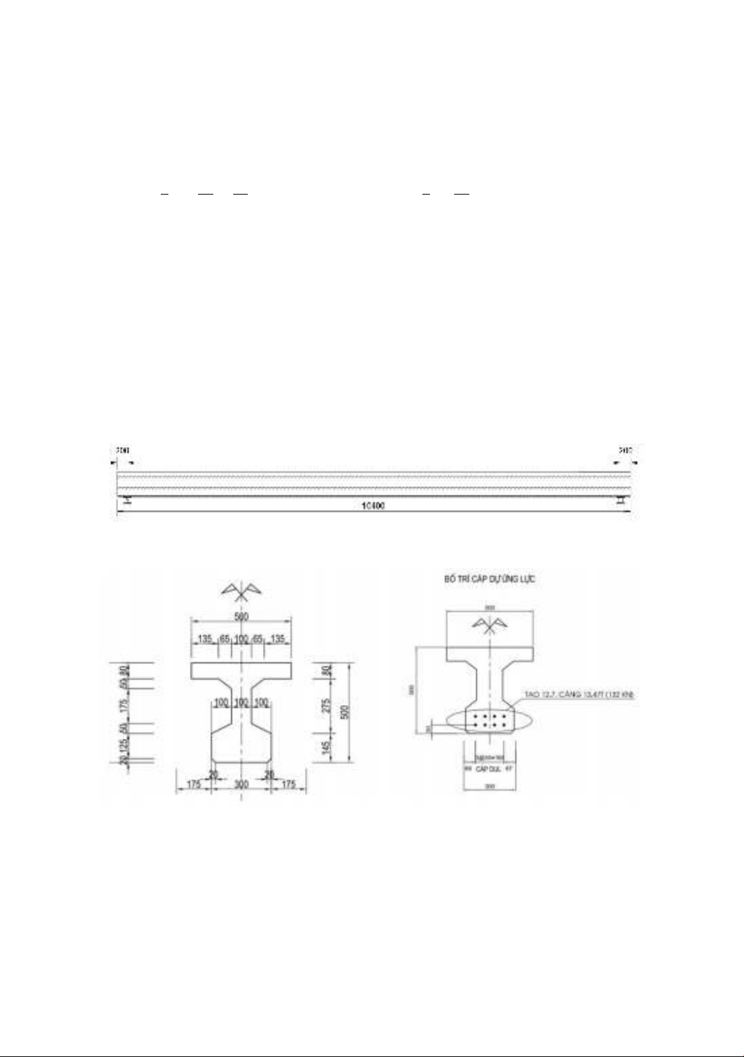10 m, tiết diện chữ T và với các kích thước, bố trí cốt thép UST và cốt thép thường thể hiện trên các