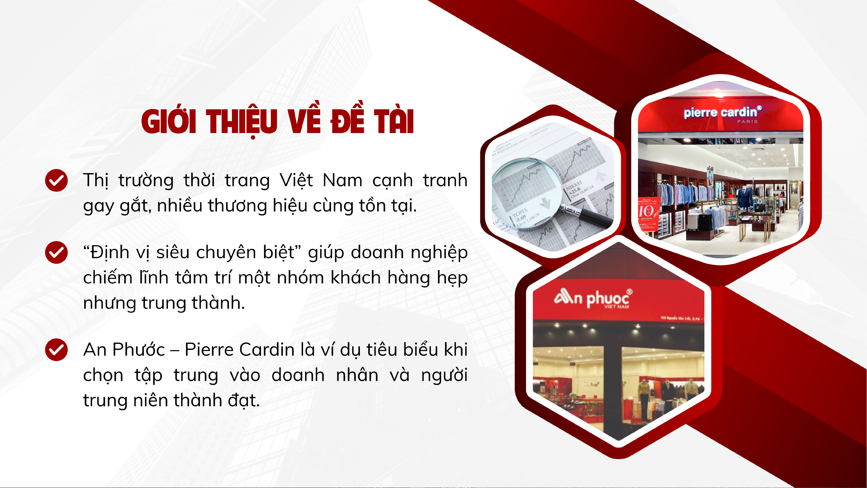 Bài thuyết trình nghiên cứu định vị siêu chuyên biệt của An Phước – Pierre Cardin, thương hiệu thời trang Việt Nam tập trung vào phân khúc doanh nhân thành đạt.