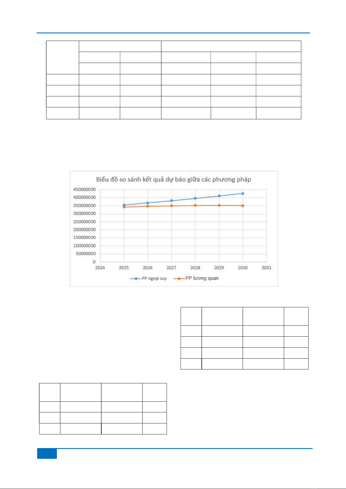 Hình 1. Biểu đồ so sánh kết quả dự báo bằng PP ngoại suy và PP tương quan