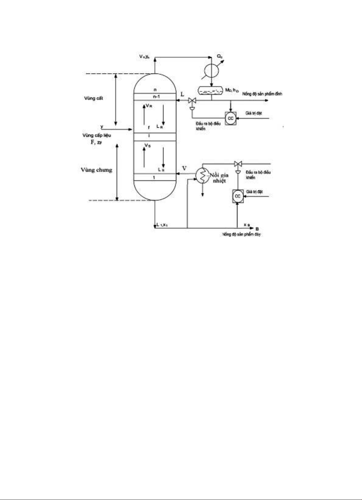 Hình 1. Sơ đồ tổng quát tháp chưng cất với cấu hình điều khiển LV