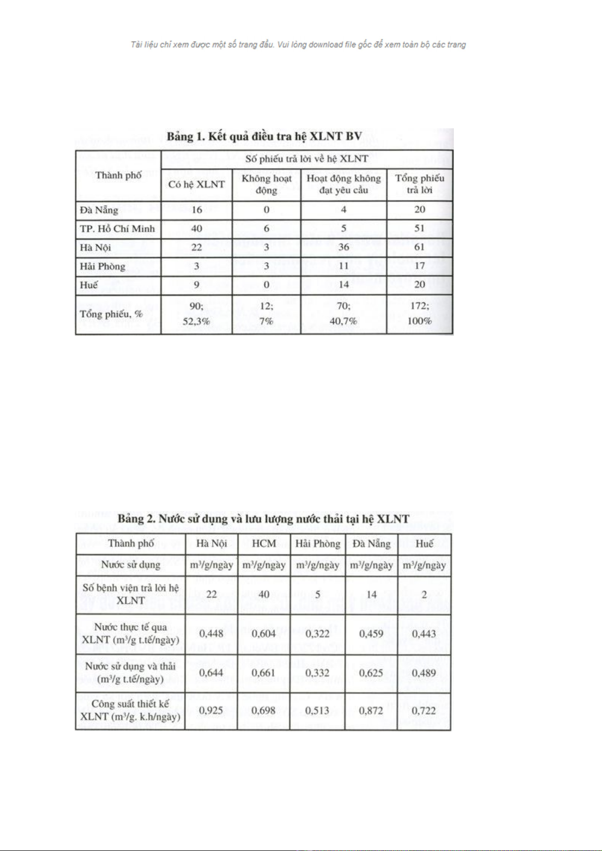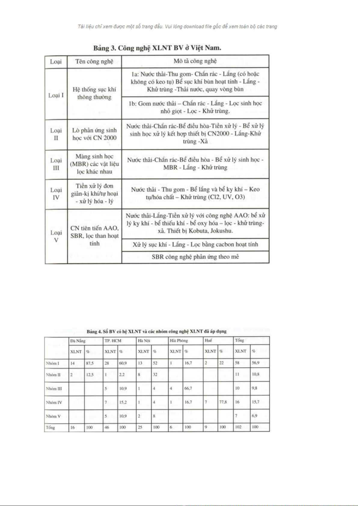 (bảng 1). Nhiều hệ XLNT đang hoạt động quá tải, chủ yếu các hệ XLNT xây lắp bằng