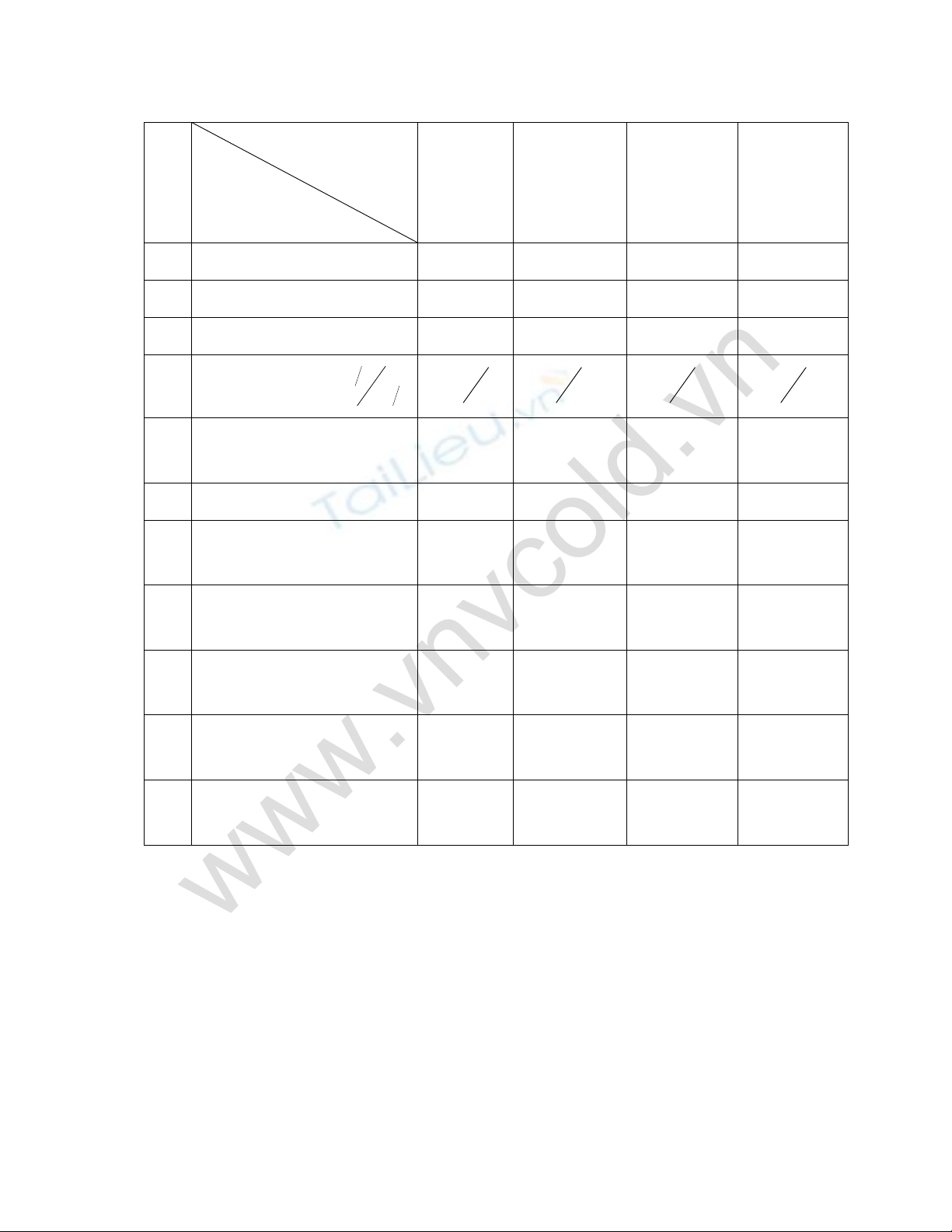 Bảng số 1 trình bày kết quả tính toán một vài thông số kỹ thuật cơ bản của bơm hướng