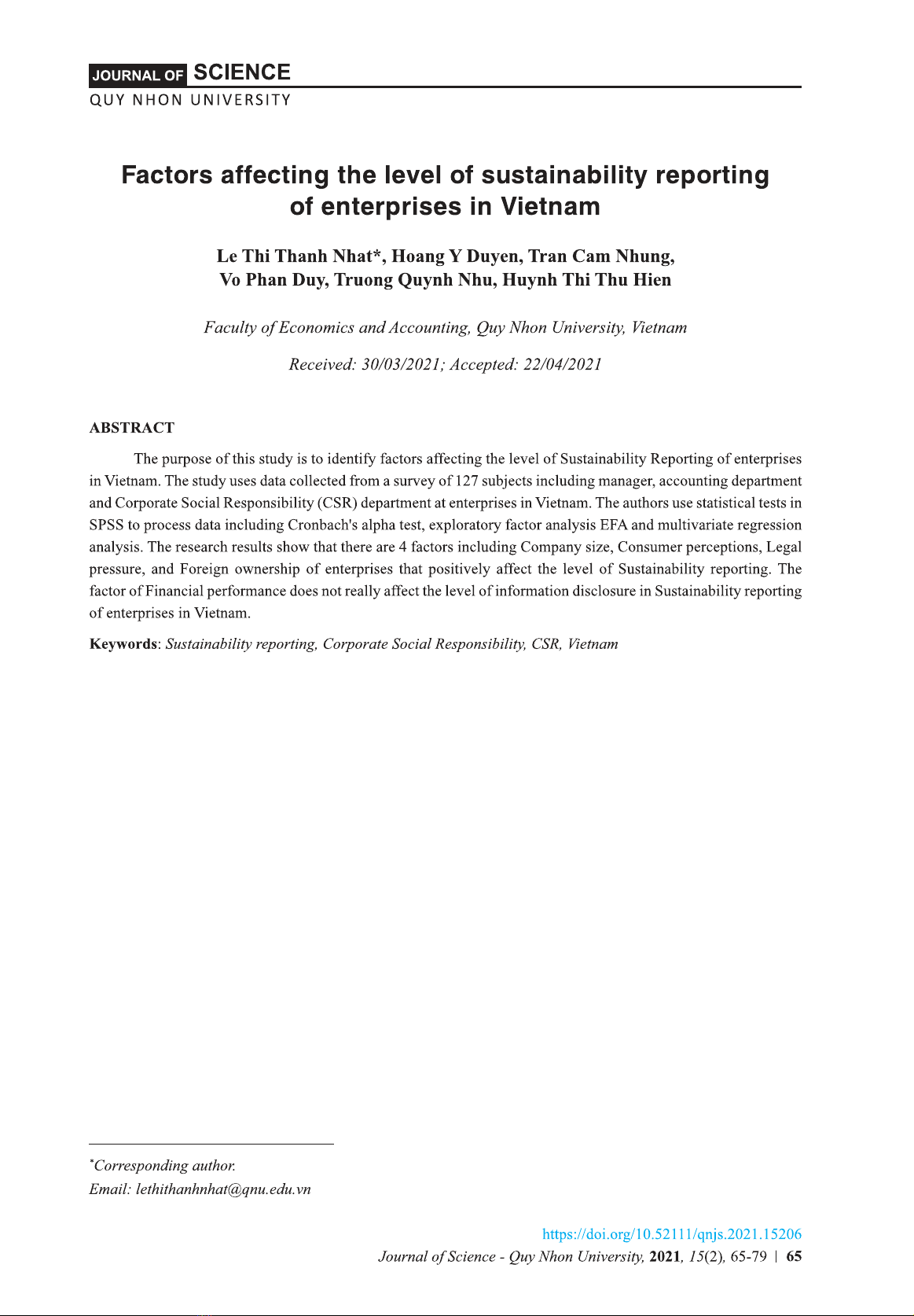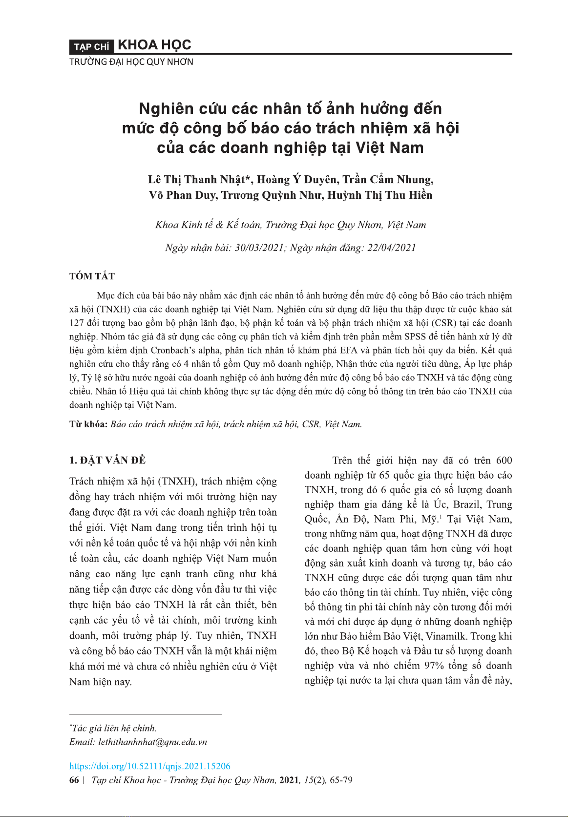Nghiên cứu các nhân tố ảnh hưởng đến mức độ công bố báo cáo trách nhiệm xã hội của các doanh nghiệp tại Việt Nam