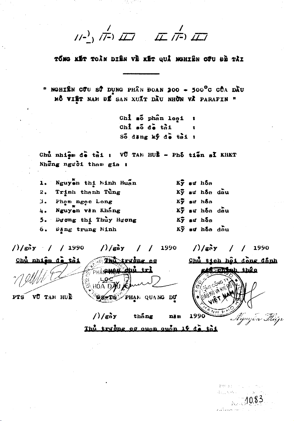 Trong giai đoạn của công nghệ lọc dầu của nước ta, loại dầu mỏ nhiều parafin đó phù hợp với phương án nhiên liệu. trên thực tế với sự trợ giúp của liên xô thời gian qua chúng ta đã có những bước chuẩn bị cụ thể để xây dựng nhà máy lọc dầu đầu tiên của đất nước với công suất 3 triệu tấn dầu thô/ năm