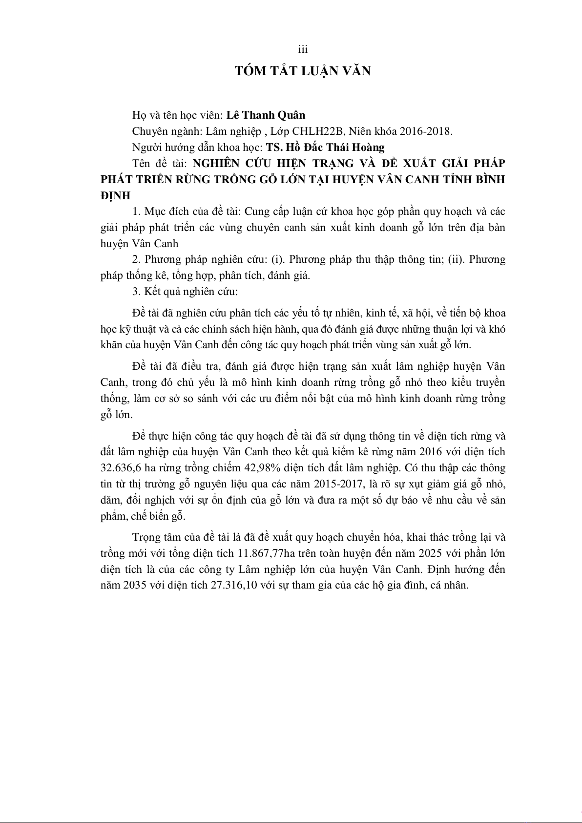 Chuyên ngành: Lâm nghiệp , Lớp CHLH22B, Niên khóa 2016-2018.