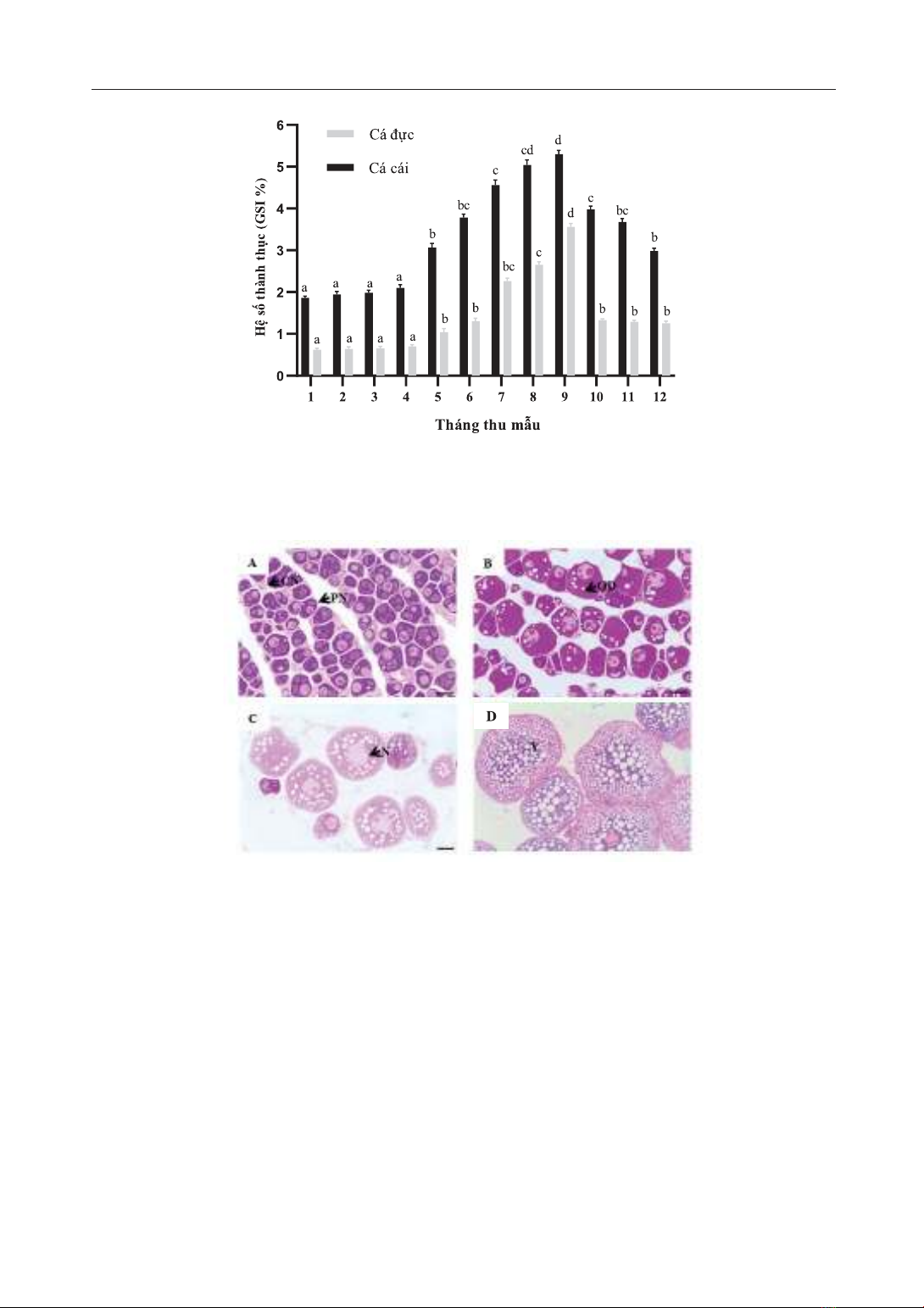 tháng 7 và giai đoạn thành thục sinh sản xảy ra từ tháng 8 đến tháng 9 với đường kính trứng lớn hơn 400 µm.