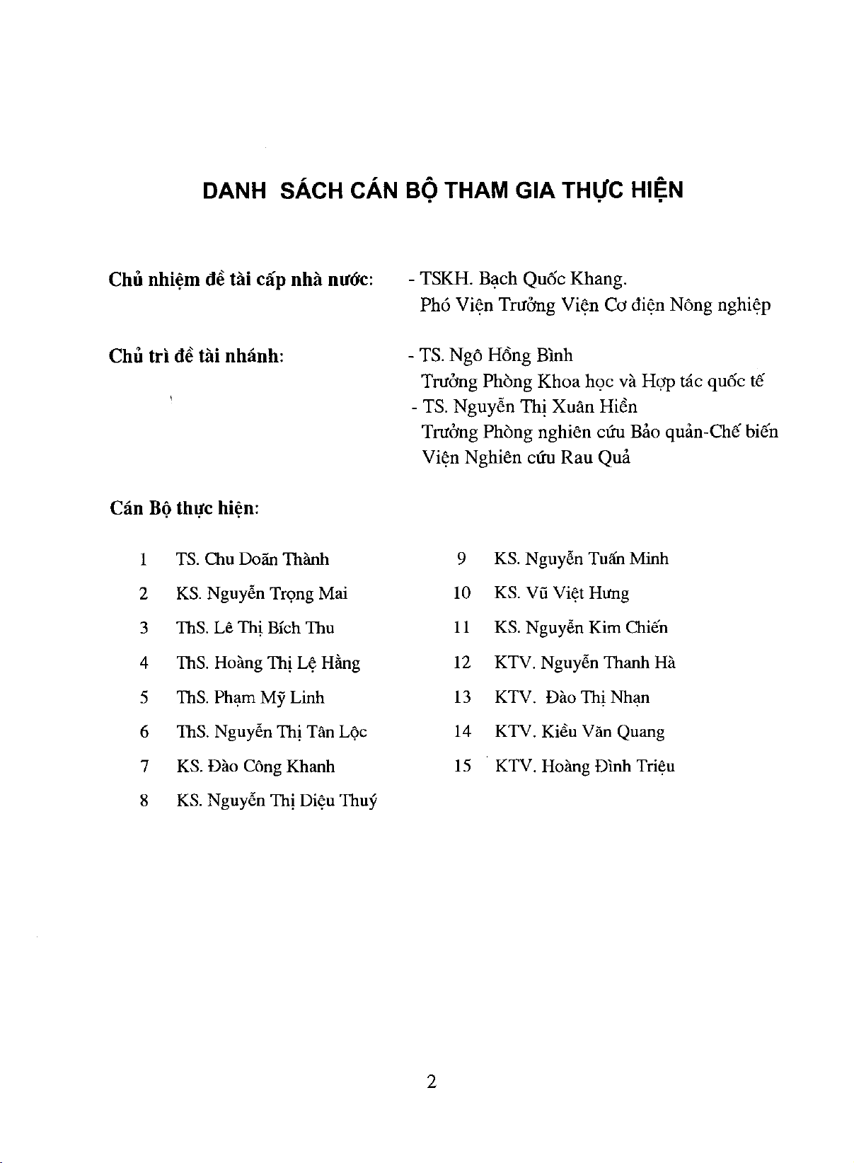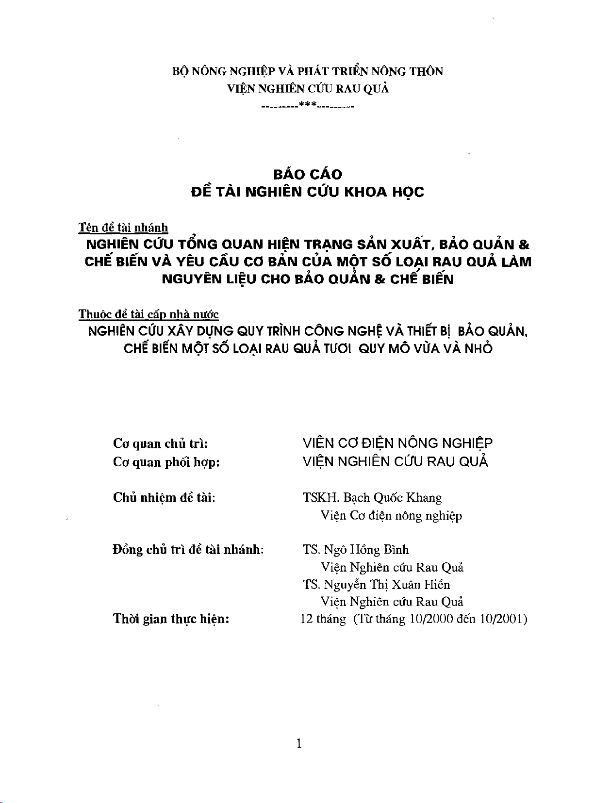 Nghiên cứu tổng quan hiện trạng sản xuất và yêu cầu cơ bản một số loài rau quả làm nguyên liệu cho bảo quản và chế biến
