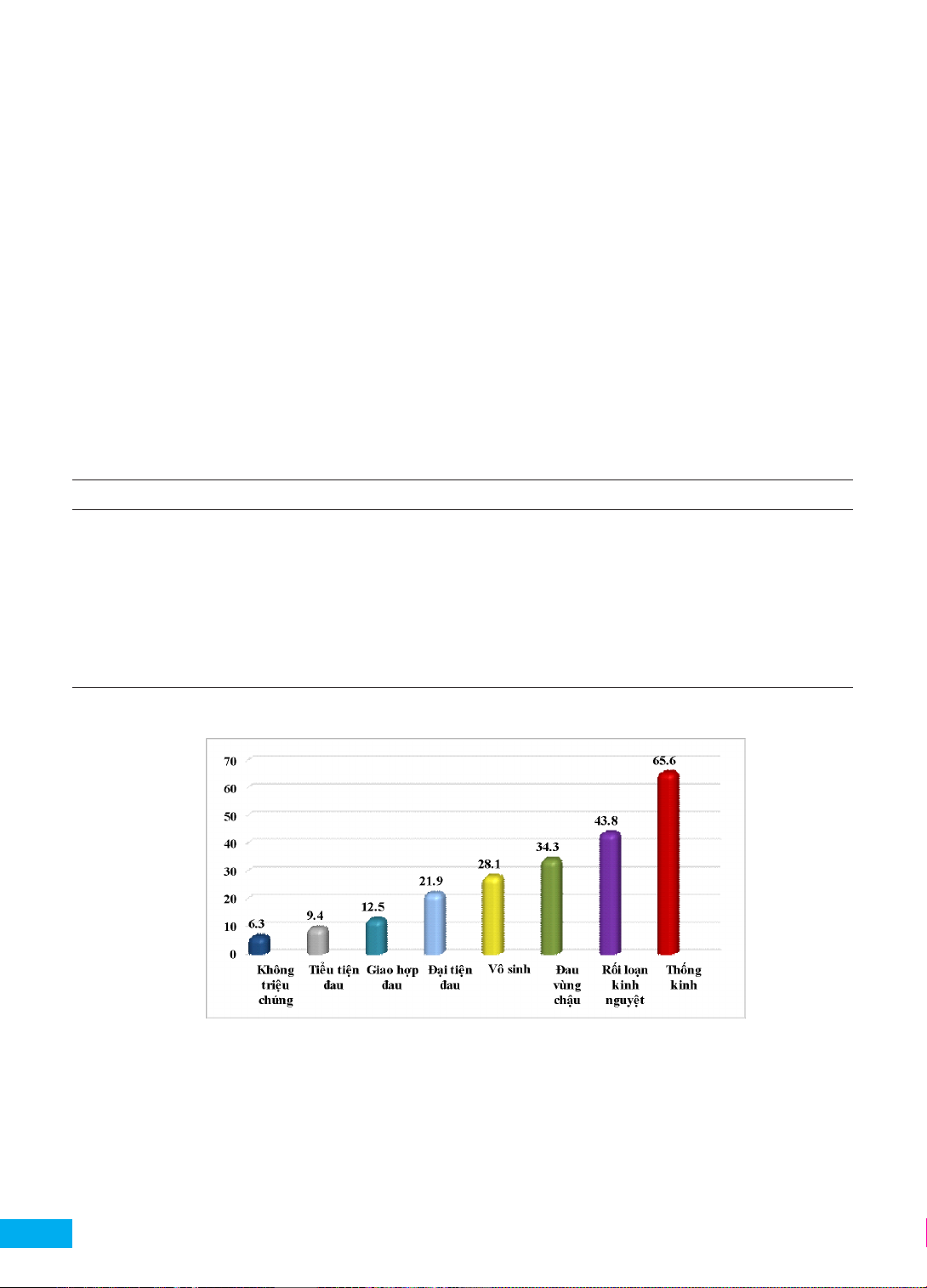 Thống kinh là triệu chứng chiếm tỷ lệ cao nhất: 65,6%. Triệu chứng chiếm tỷ lệ thấp nhất là tiểu tiện đau 9,4%.