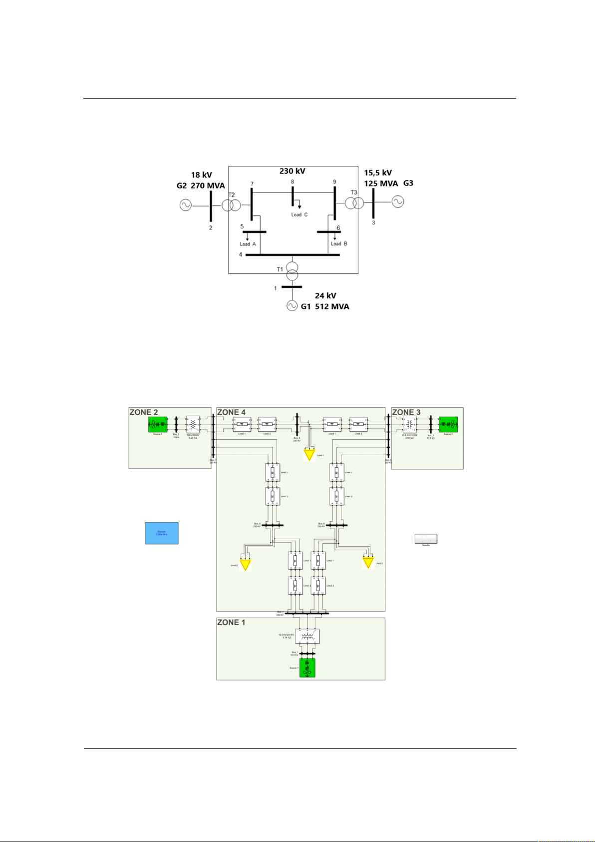 nút gồm 3 máy phát điện, 3 phụ tải và 3 máy biến áp (Hình 2) trong phần mềm Matlab Simulink.