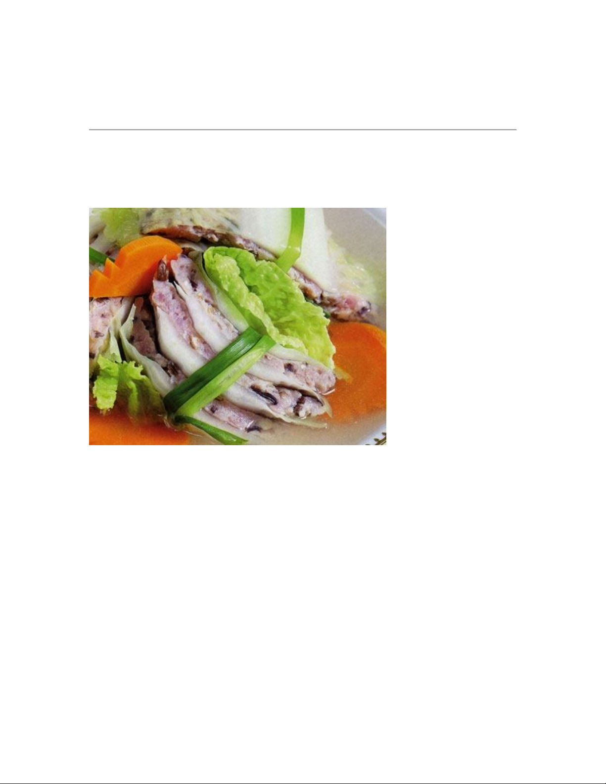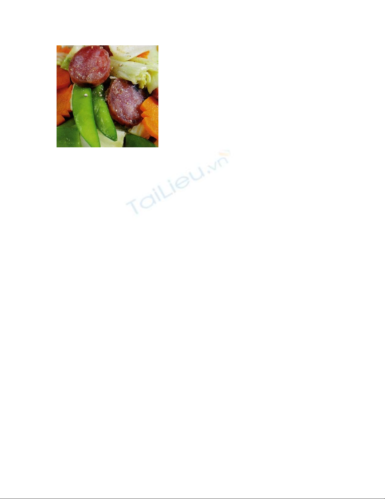 1 cây lạp xưởng, 100g đậu Hòa Lan, 100g cà-rốt, 300g cải thảo, 1/2 củ hành