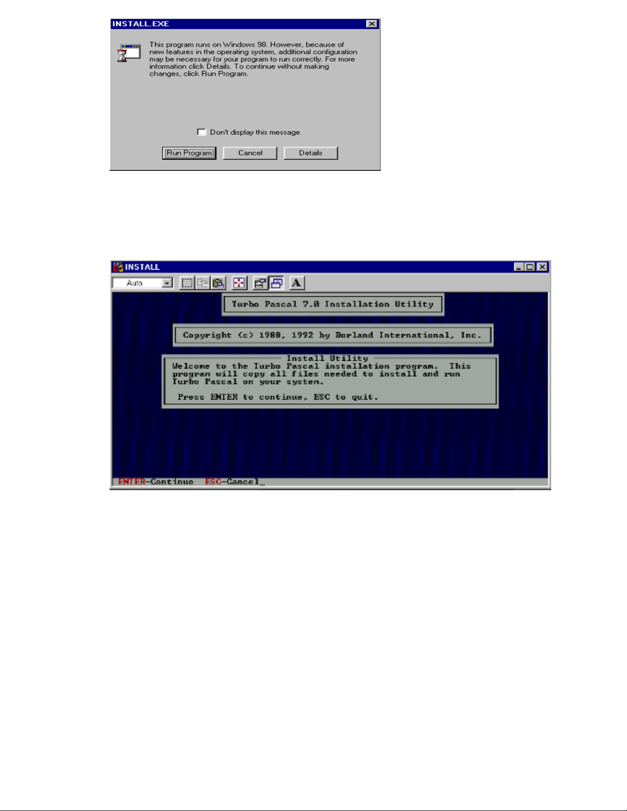 Hình H3 Cửa sồ thông báo cài đặt Turbo Pascal