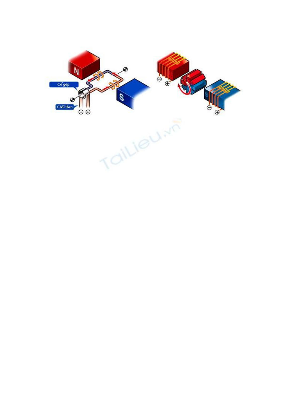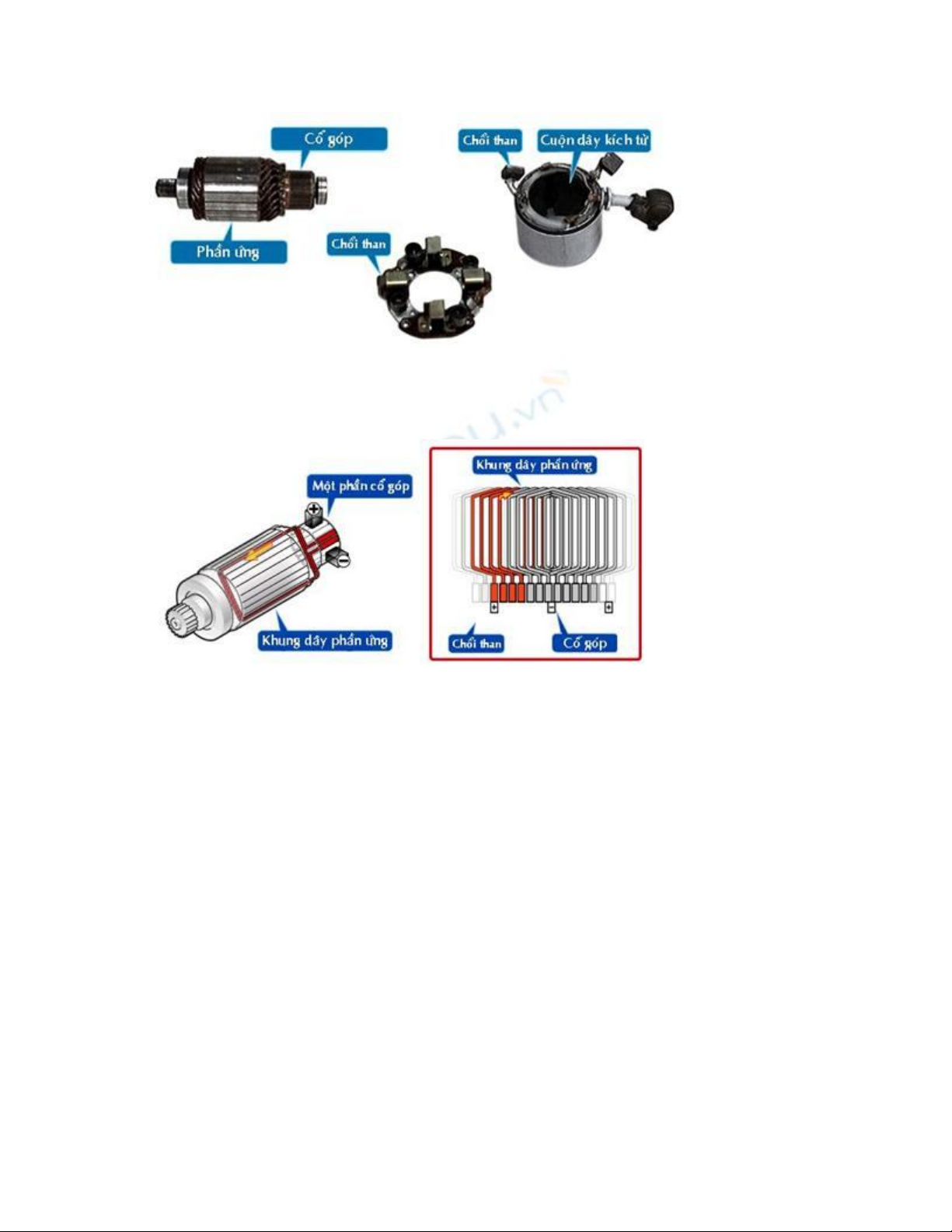 được hàn với cùng một phiến đồng trên cổ góp. Dòng điện chạy từ chổi than