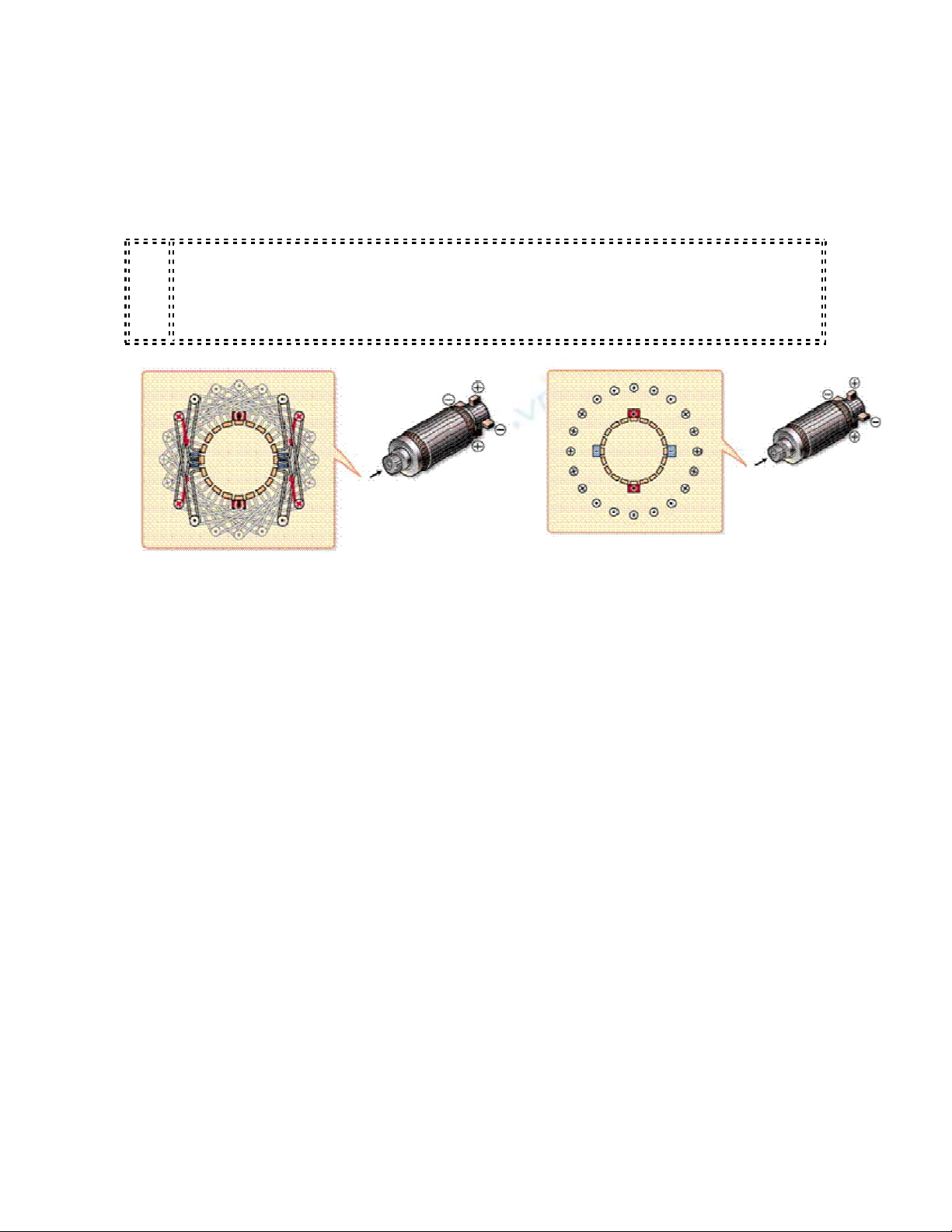 Nhờ sự bố trí các khung dây trong phần cảm và phần ứng mà sinh ra lực từ làm