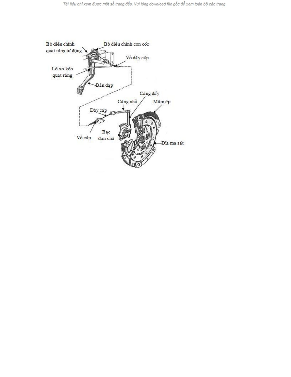 Cơ cấu điều khiển ly hợp bằng cáp cấu tạo gồm một sợi cáp dây bằng thép và bên