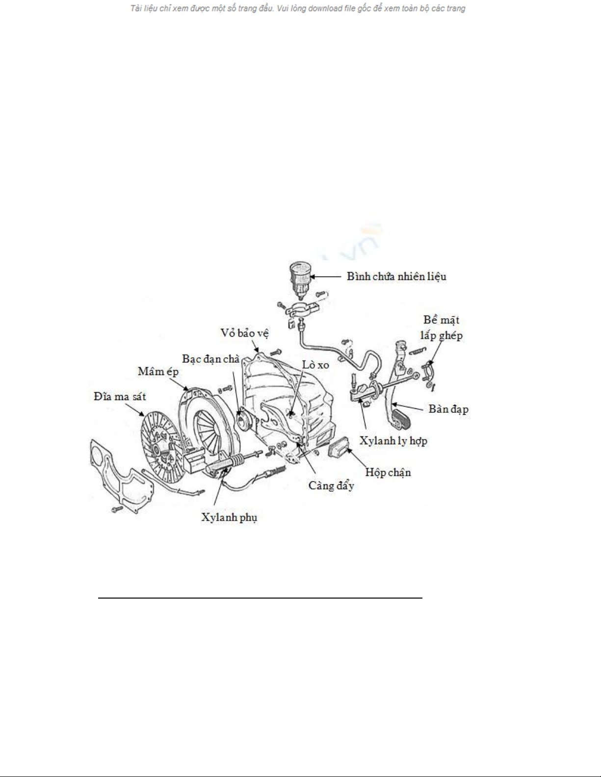 làm cho đĩa ly hợp tách khỏi bề mặt bánh đà. Khi nhấc chân lên khỏi pedal. Lò xo
