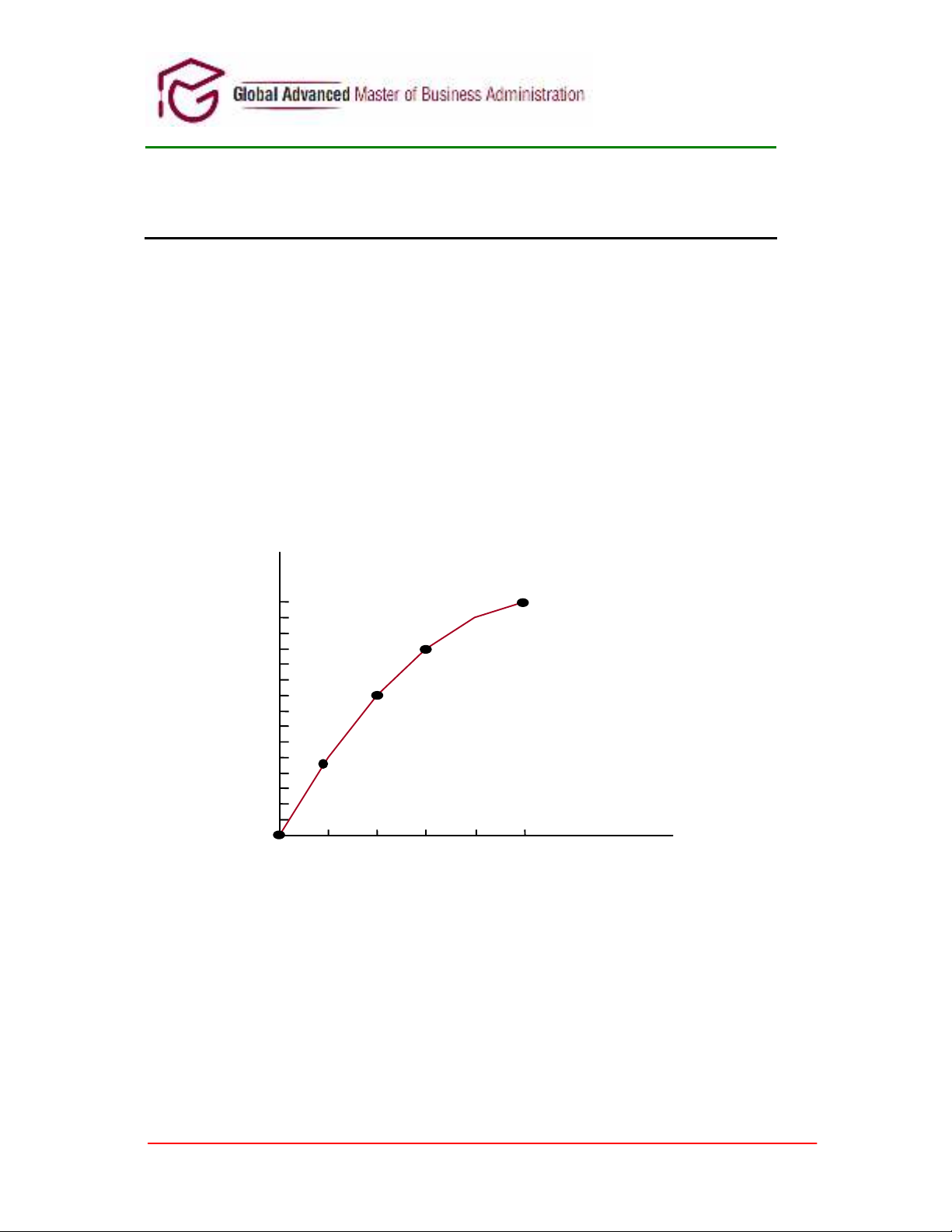 nhất trong bảng 1 và sản lượng (trục tung) được lấy từ cột thứ hai. Độ dốc của hàm sản xuất