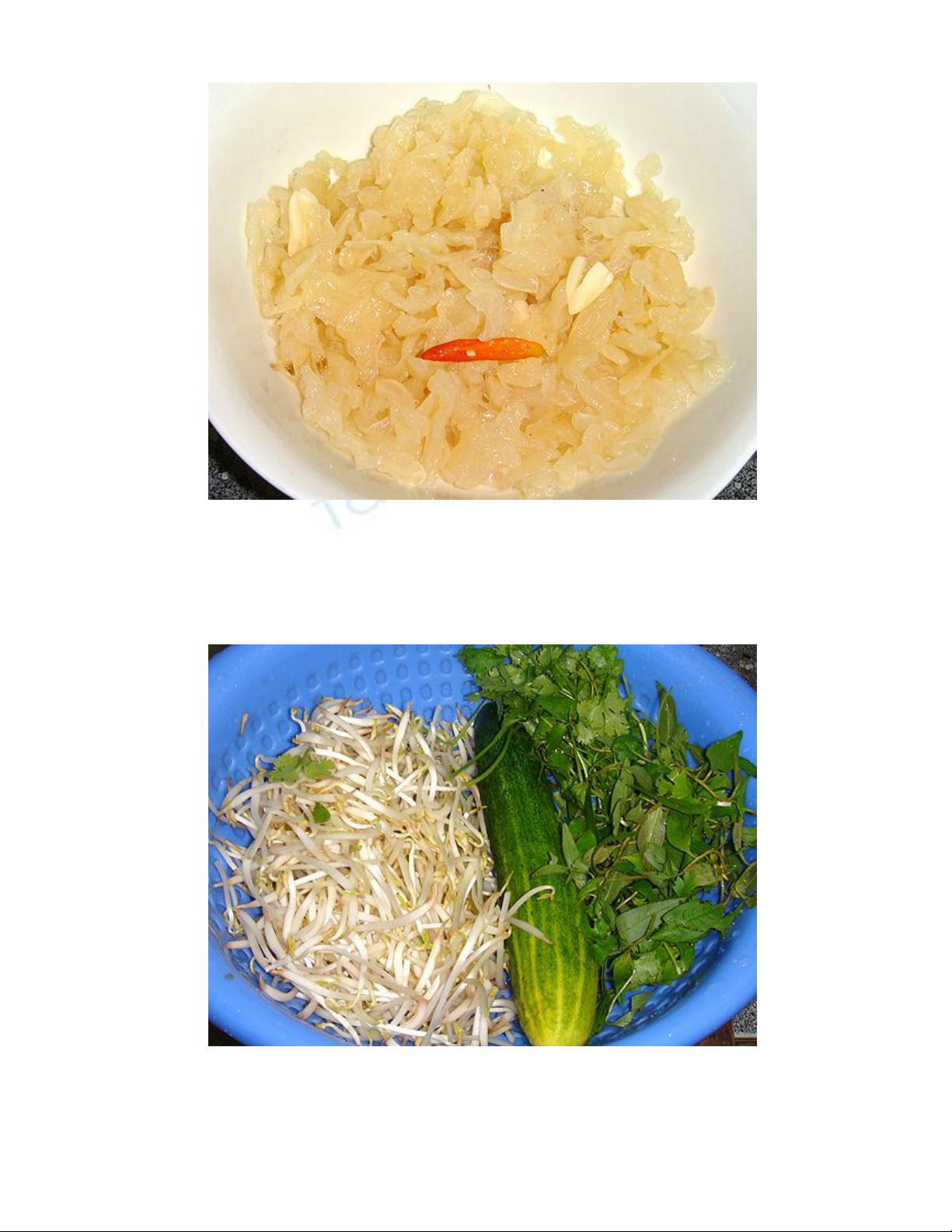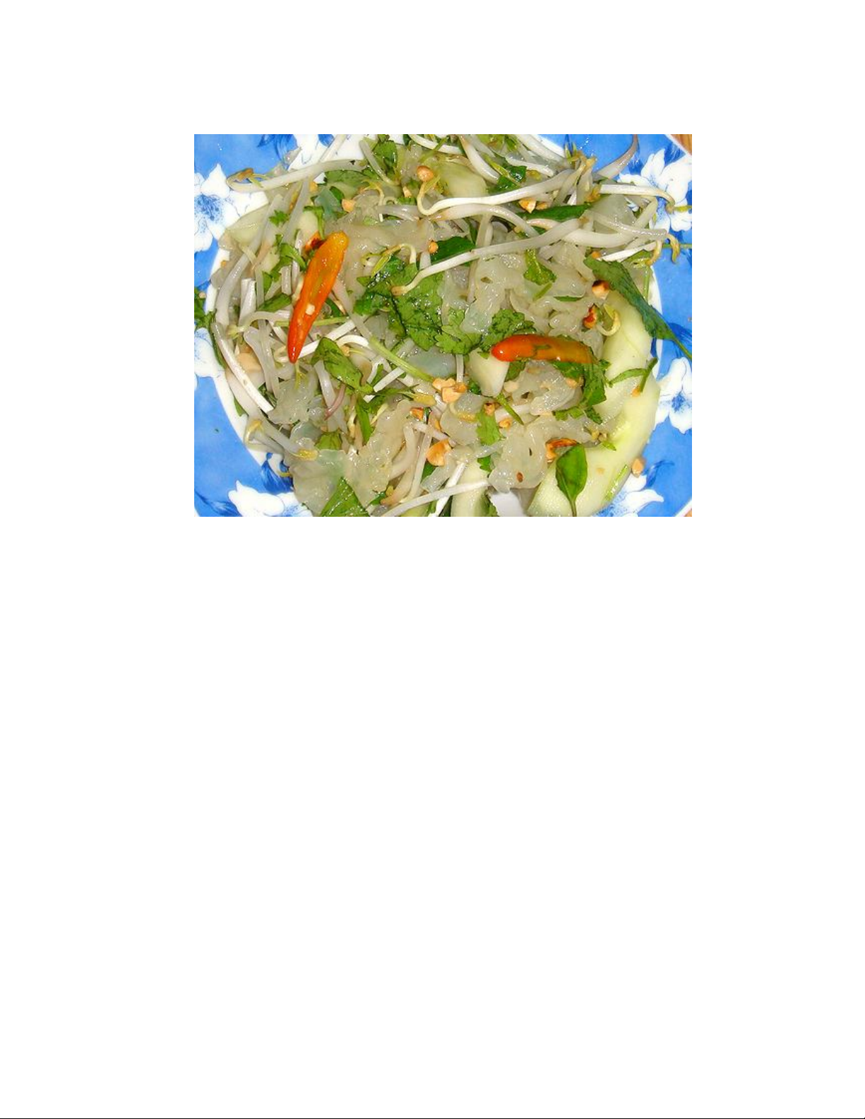Vị giòn tan của sứa kết hợp với vị ngọt mát của giá và dưa chuột, các loại rau thơm