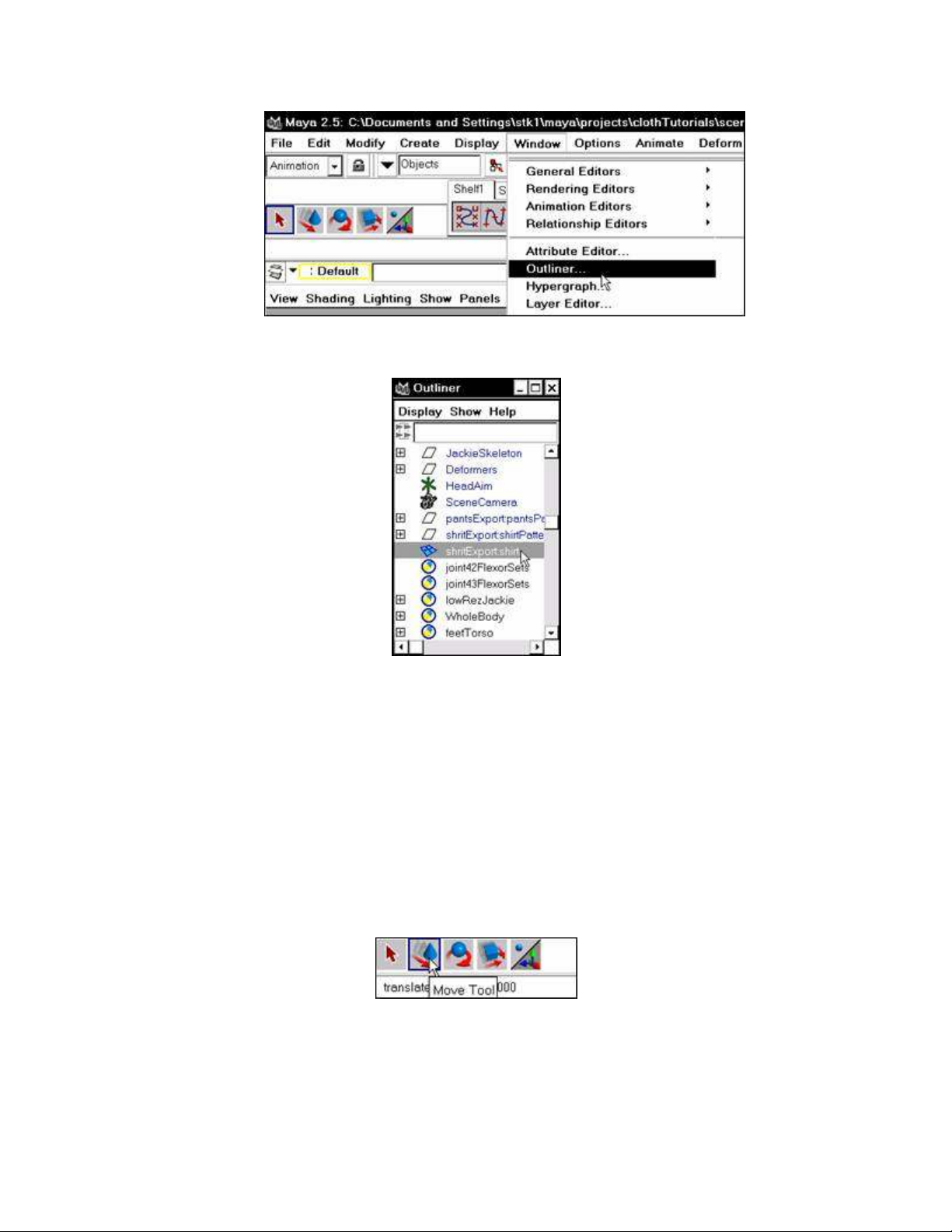 Trong cửa sổ Outliner, nhấp chọn shirtExport:shirt.