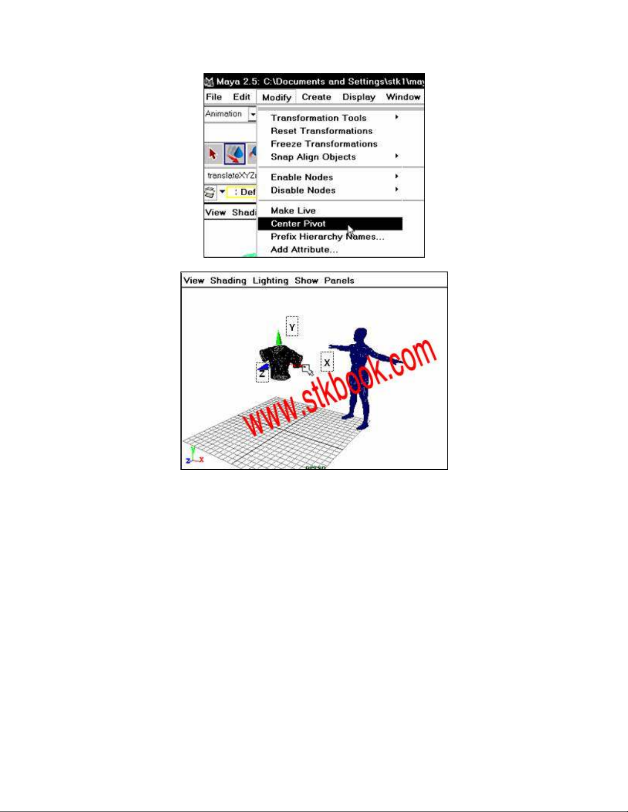 Từ Main Menubar nhấp chọn Modify > Center Pivot. Để đưa hệ trục tọa độ về giữa áo.