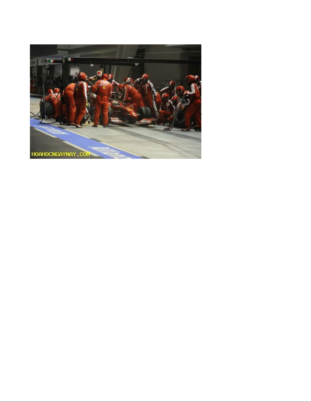 cháy. Do đó, loại xăng pha chế riêng cho dòng xe F1 phải chứa nhiều hạt gây nổ nhằm