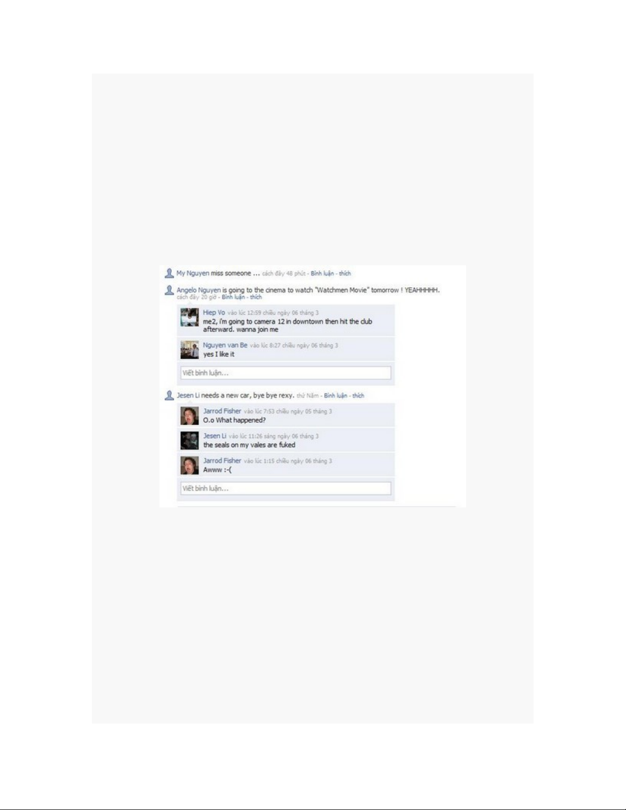 th vi t comment vào "b c t ng". Đ i l i b n cũng có th vi t comment trên profile c a b n bè.ể ế ứ ườ ổ ạ ạ ể ế ủ ạ