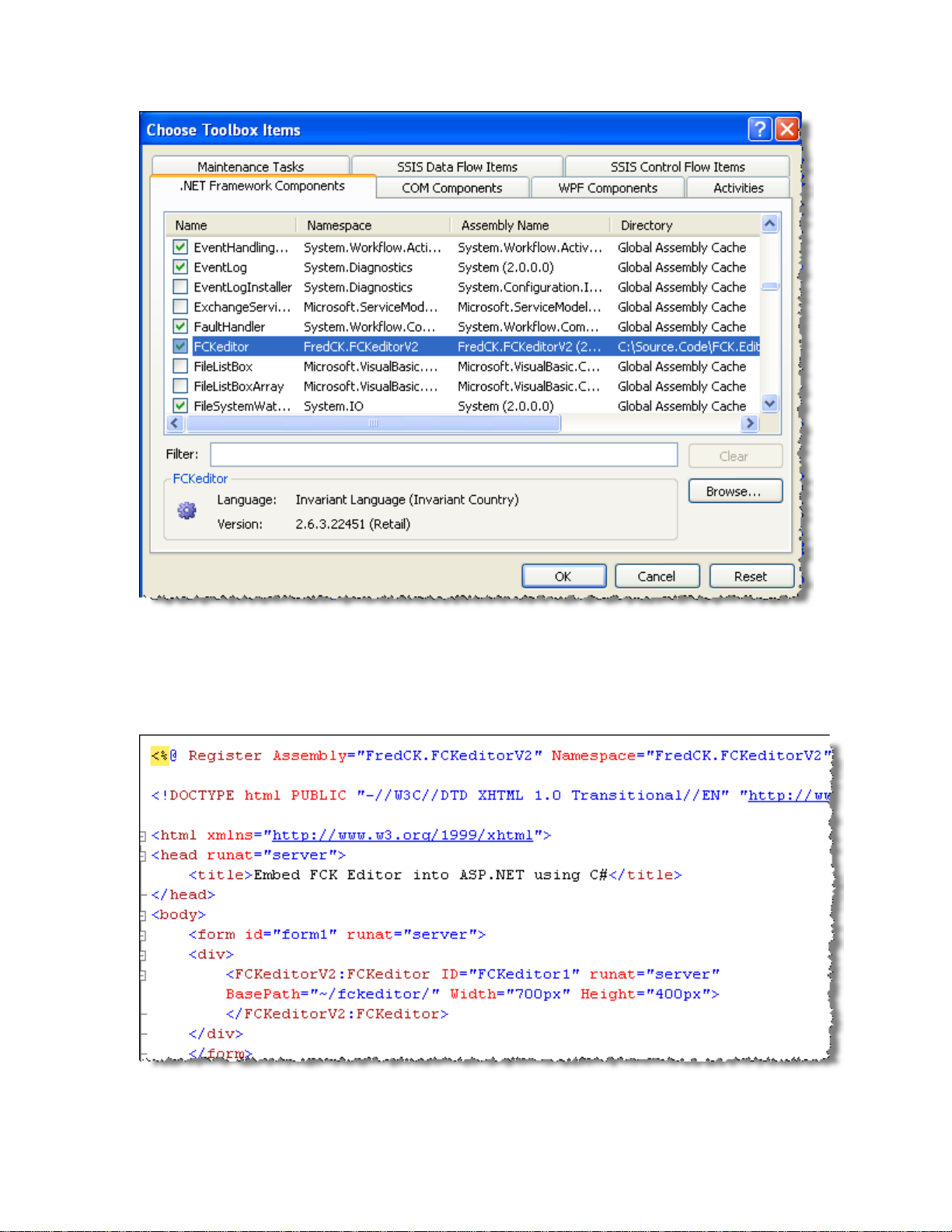 choose items... và chọn file FredCK.FCKeditorV2.dll, hoặc kéo