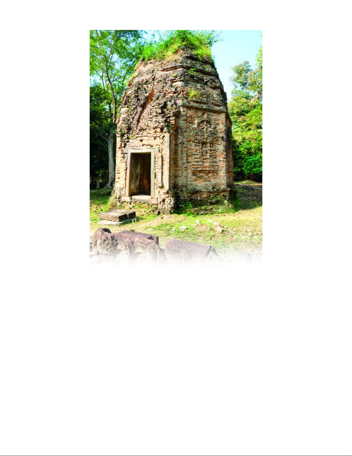 đền bị sụp đổ, nằm ngổn ngang cạnh những hố bom B52. Quần thể được chia làm