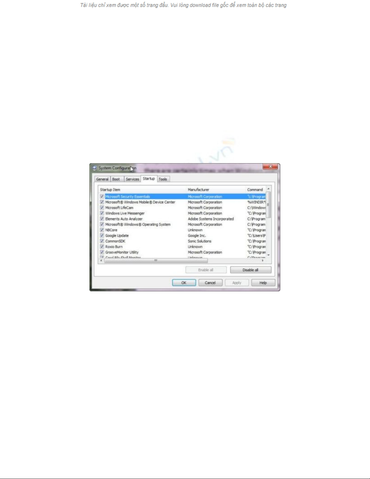 thanh Startup và loại bớt những ứng dụng không cần thiết