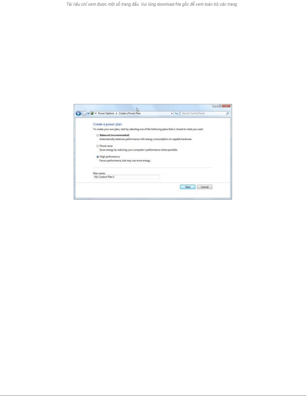 Thiết đặt hiệu suất tối đa trong phần Power Settings. Dù