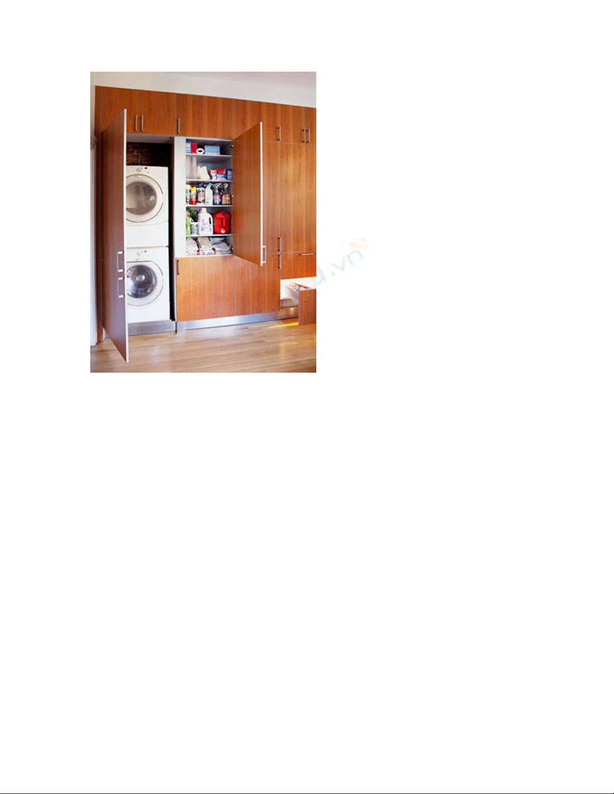 như chiếc máy giặt cũng được đưa vào các ngăn tủ.