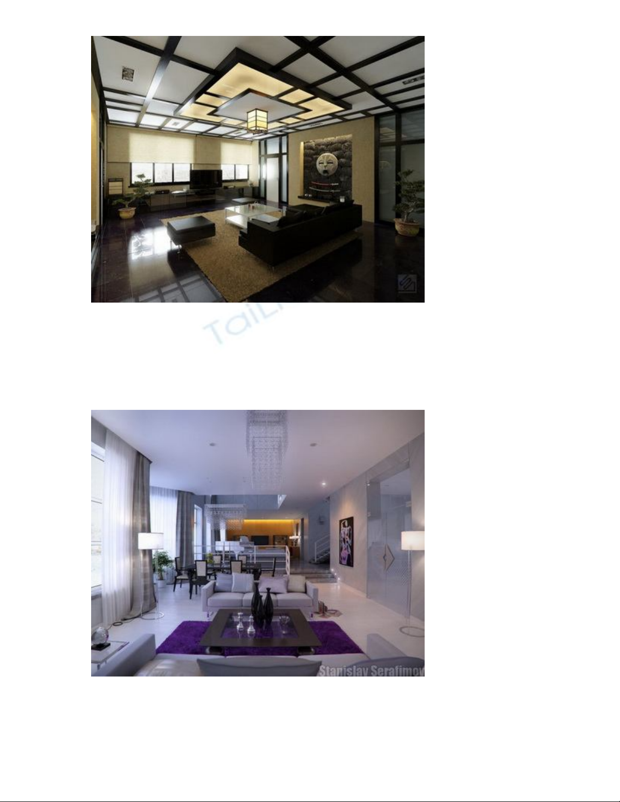 Phòng khách hiện đại theo phong cách Nhật Bản với các đồ nội thất thấp, trần
