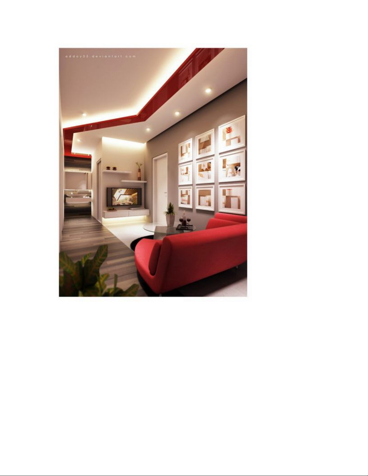 Phòng khách hiện đại kết hợp màu trắng và đỏ, với trần nhà cao, góc cạnh với
