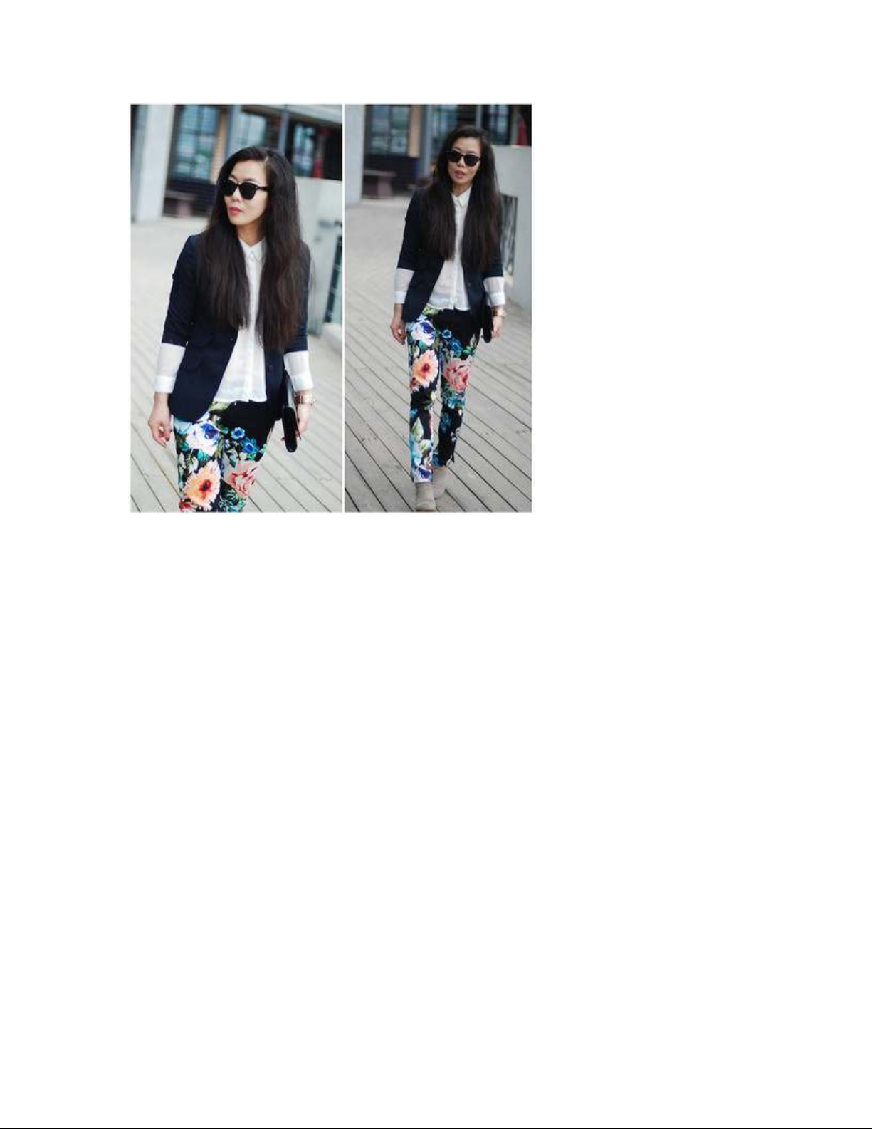 phong cách cùng set đồ này: kết hợp qun in hoa với blazer cơ bản và áo sơ