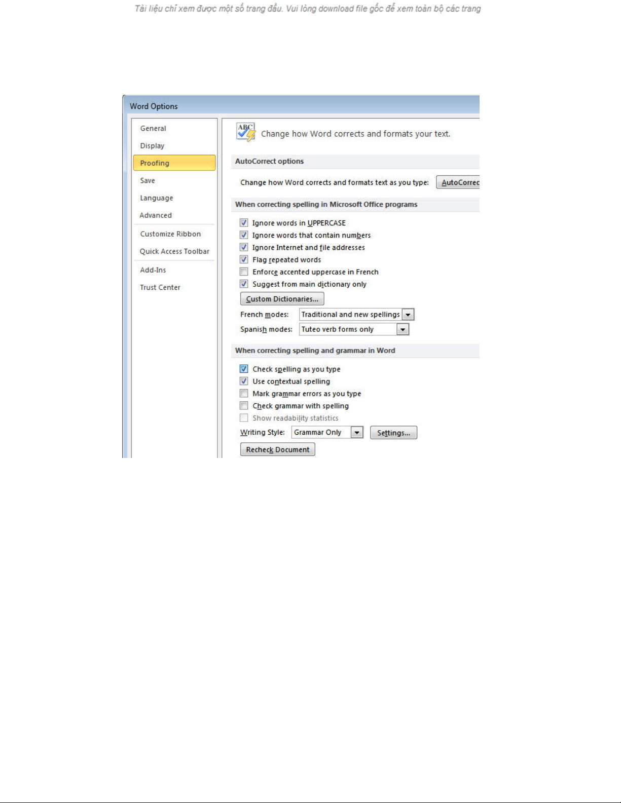 rất được nghĩ đến. Để làm như vậy, bạn hãy chọn File > Options > Proofing