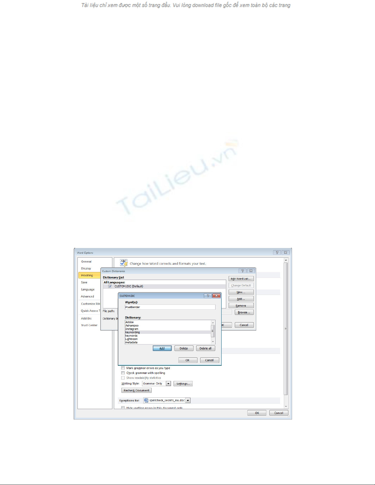 đang sử dụng từ điển đặc biệt nhấp vào Edit Word List. Gõ một từ và nhấn