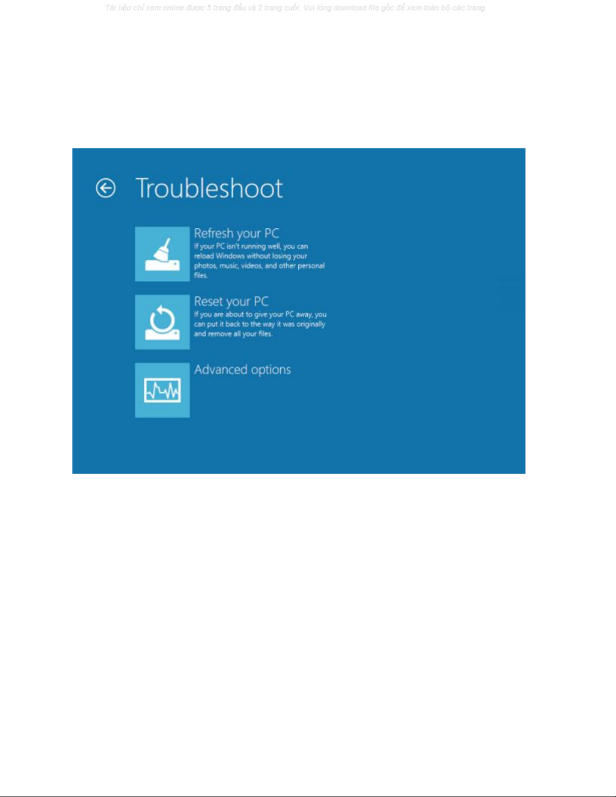 bảo quản hồ sơ người dùng, cài đặt, và các ứng dụng. Lưu ý rằng, Refresh chỉ bảo tồn các