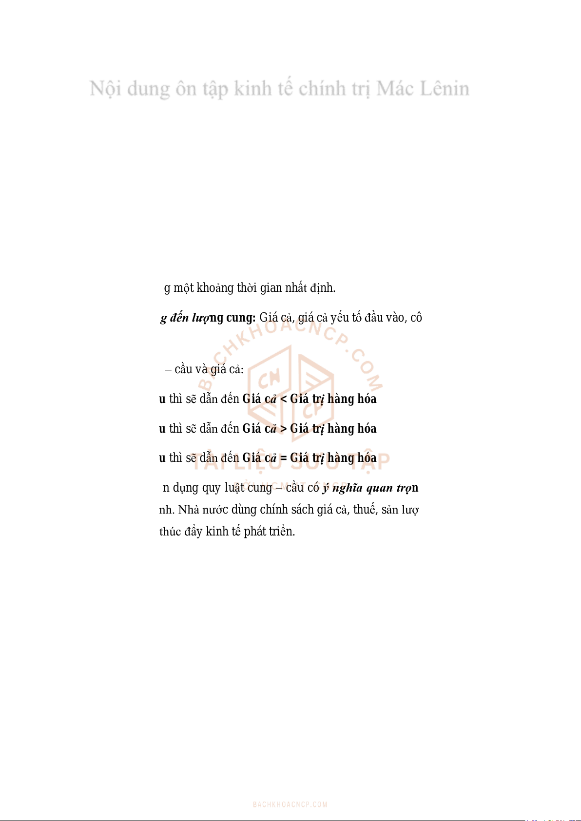 - Nếu Cung > Cầu thì sẽ dẫn đến Giá cả < Giá trị hàng hóa