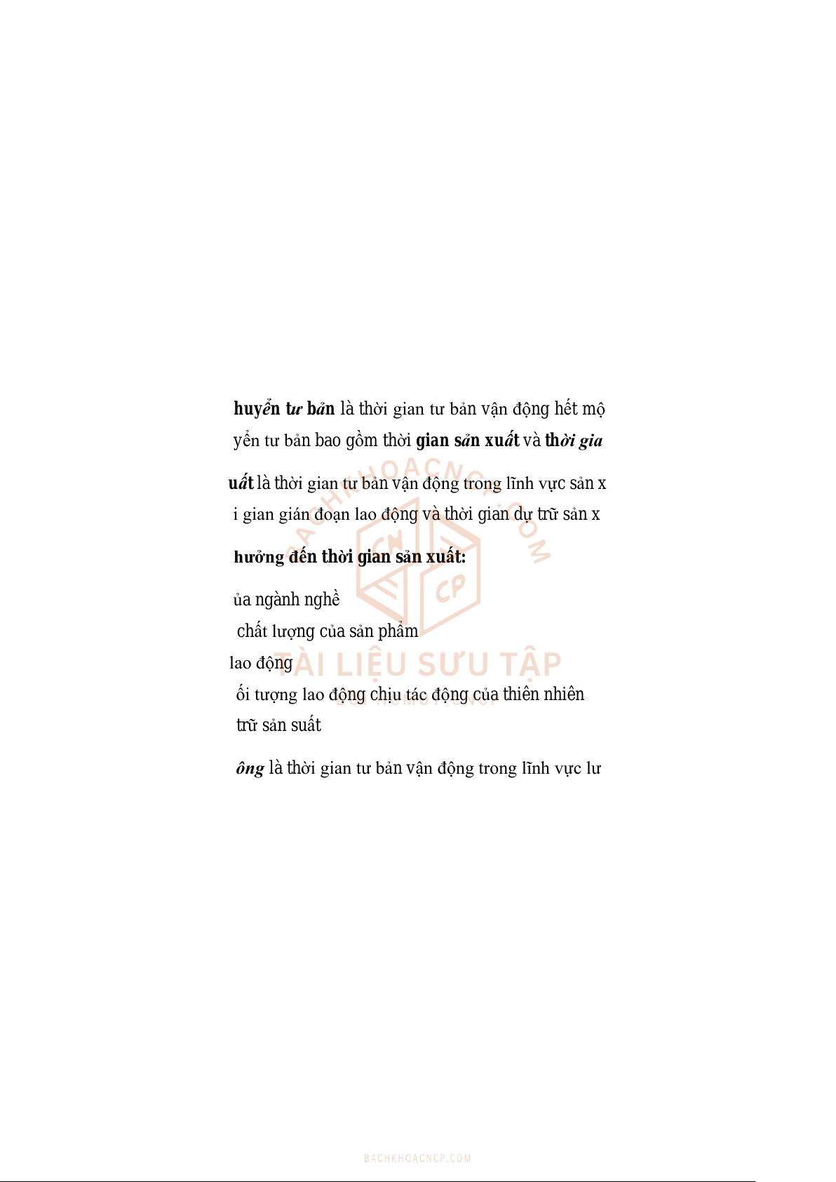 - Thời gian sản xuất là thời gian tư bản vận động trong lĩnh vực sản xuất, bao gồm thời