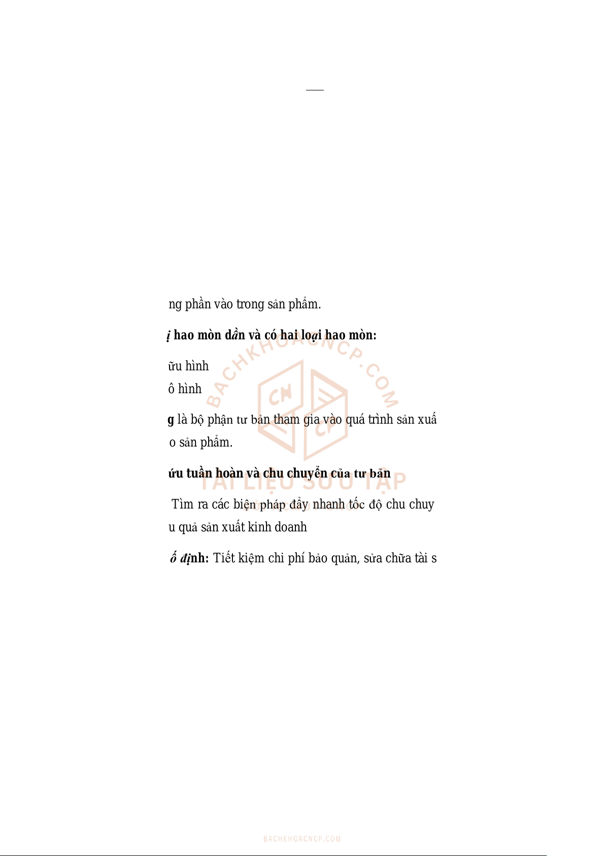 - Tư bản cố định là bộ phận của tư bản tham gia vào quá trình sản xuất, giá trị của nó