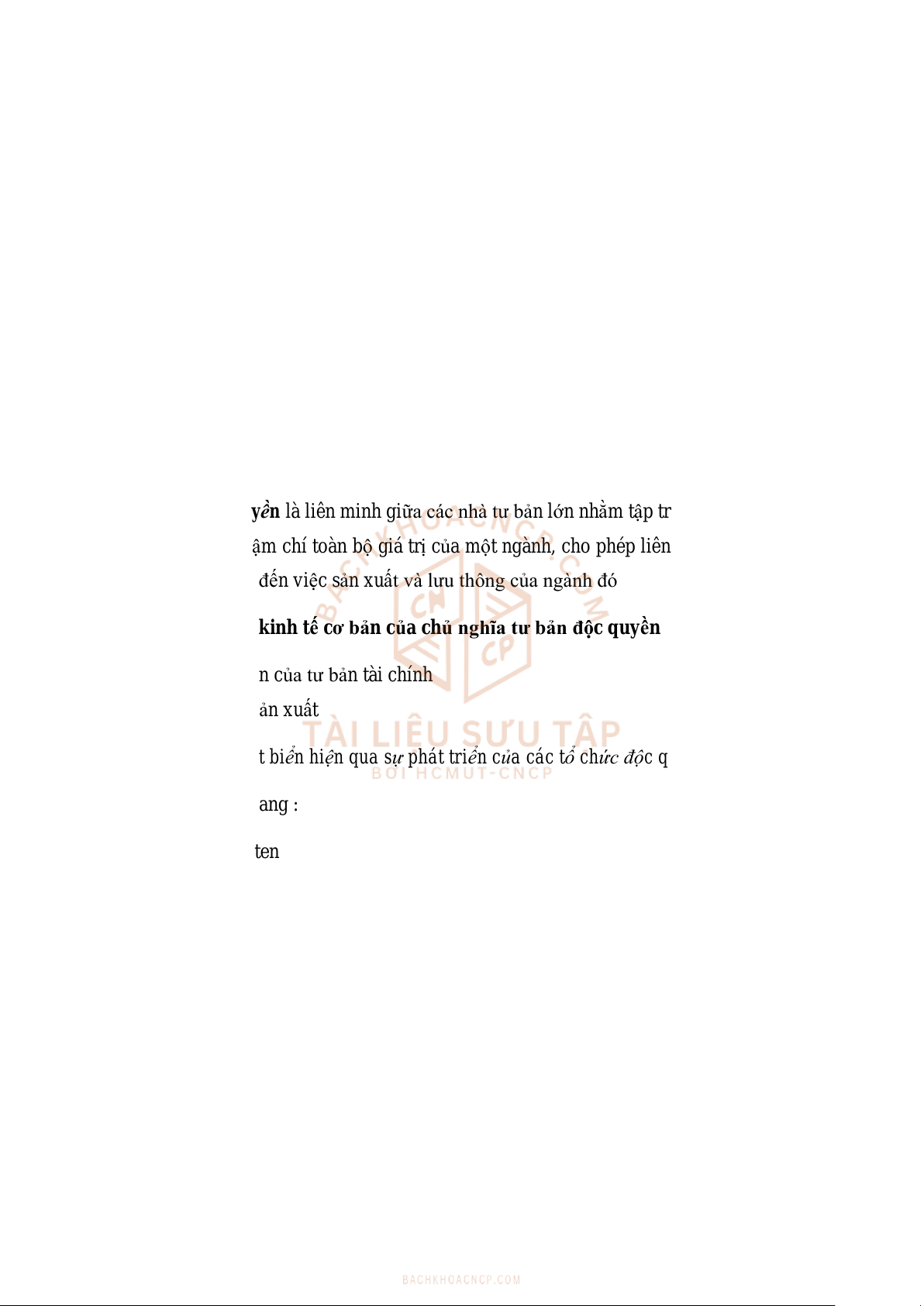 Những đặc điểm kinh tế cơ bản của chủ nghĩa tư bản độc quyền