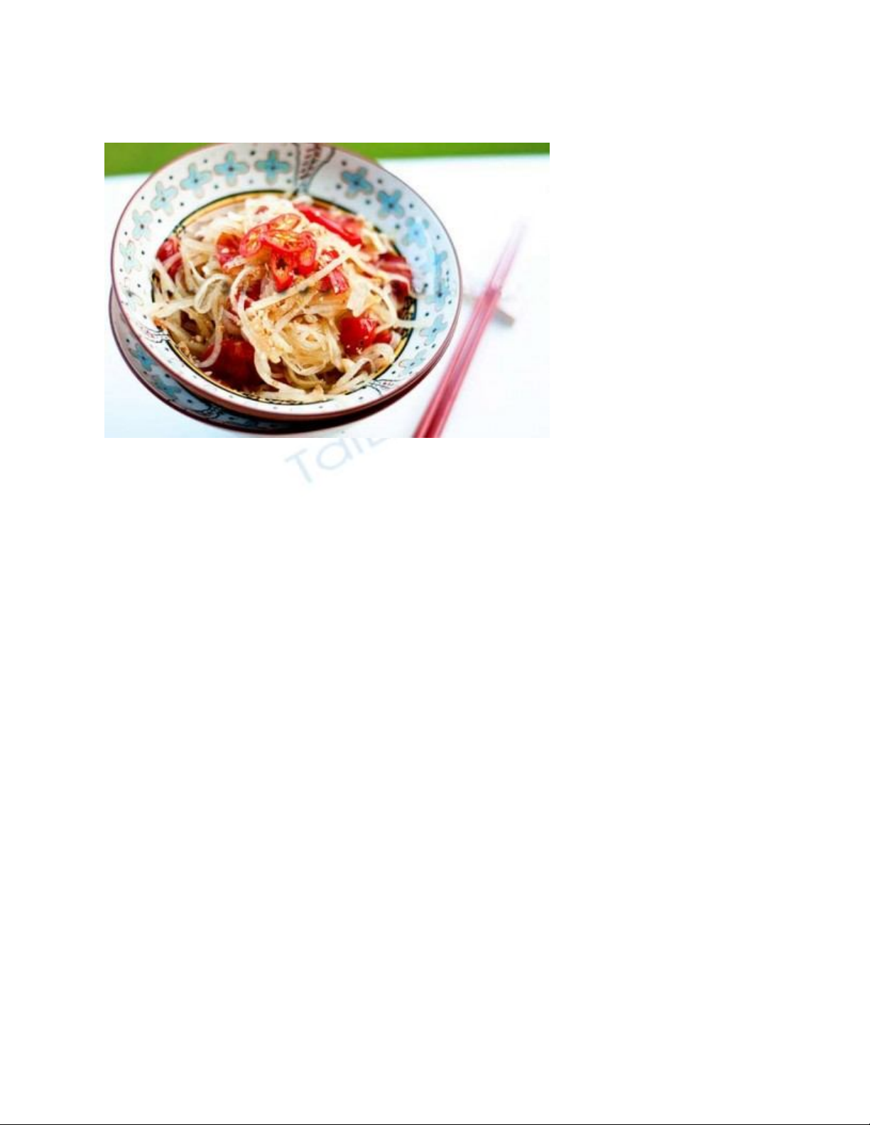 1 quả đu đủ xanh cỡ nhỏ, gọt vỏ, bỏ hạt, nạo thành dạng sợi mảnh