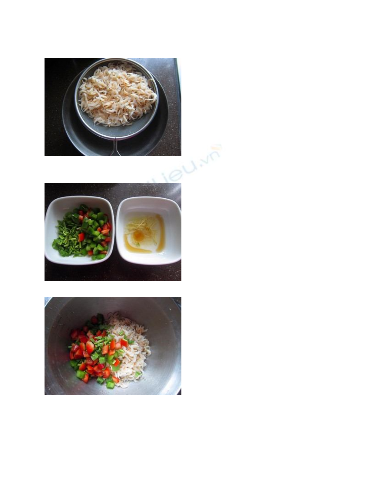 - Ớt chuông xắt hạt lựu, rau mùi thái nhỏ, đổ