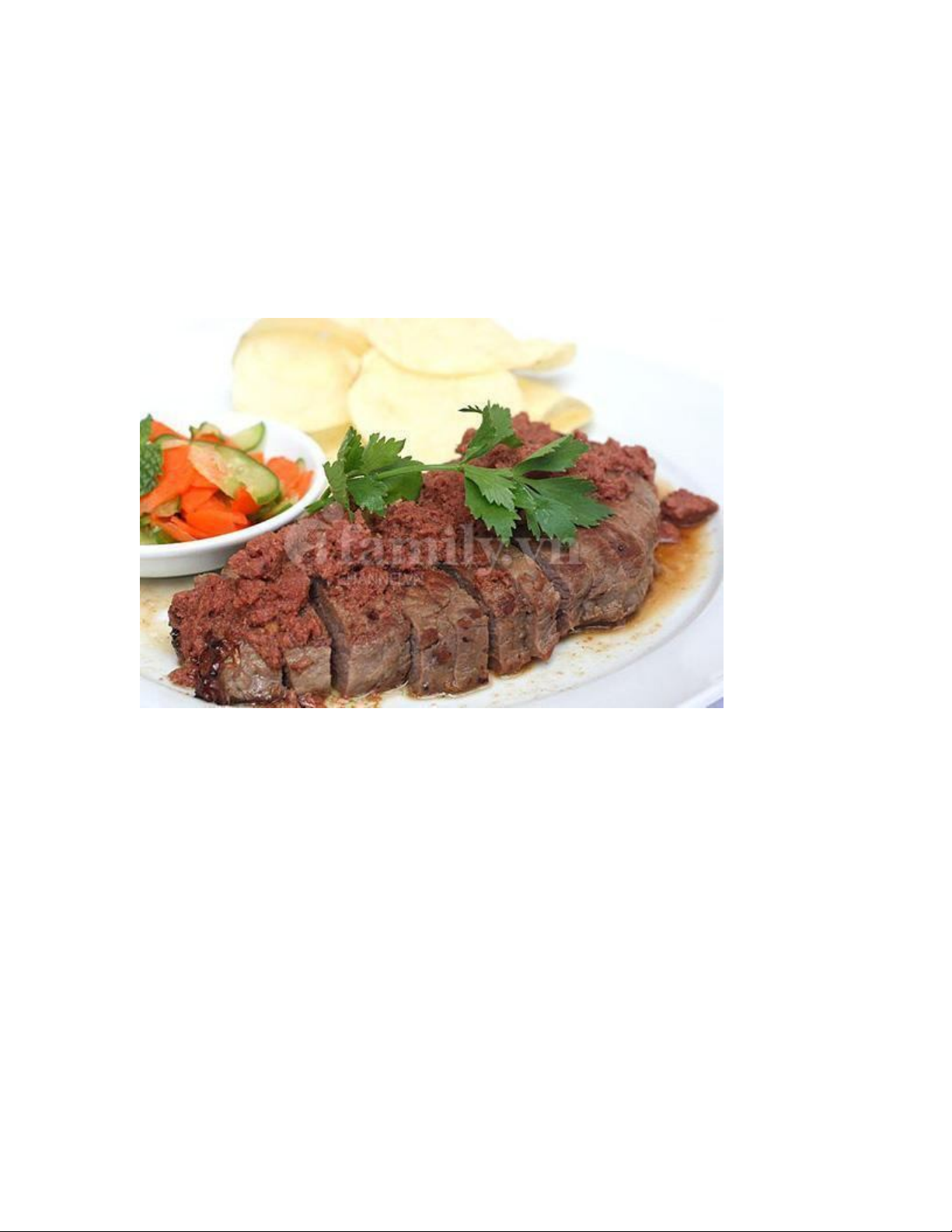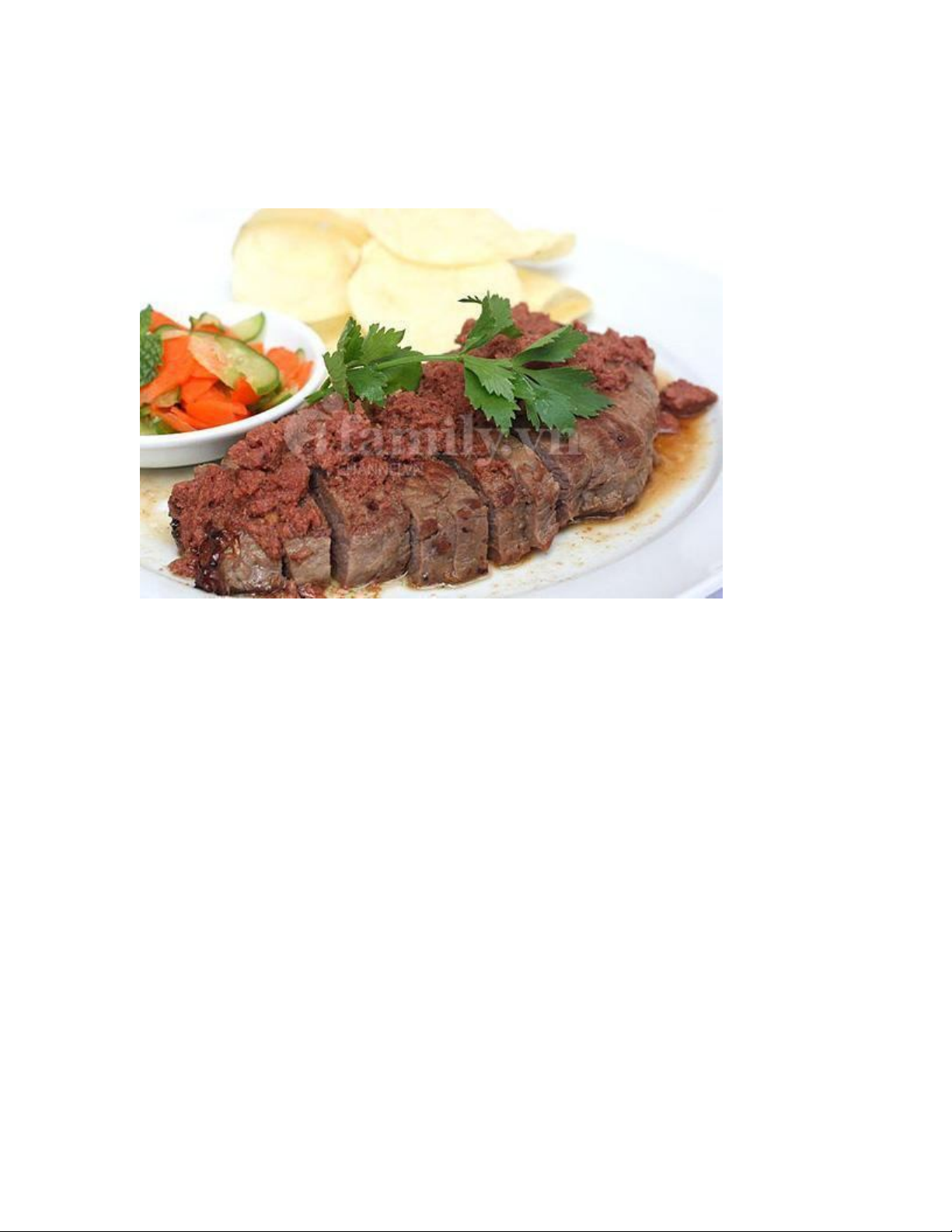 Dùng dĩa thăm vào miếng thịt bò rồi ướp với gia vị, hạt tiêu, tỏi bằm khoảng