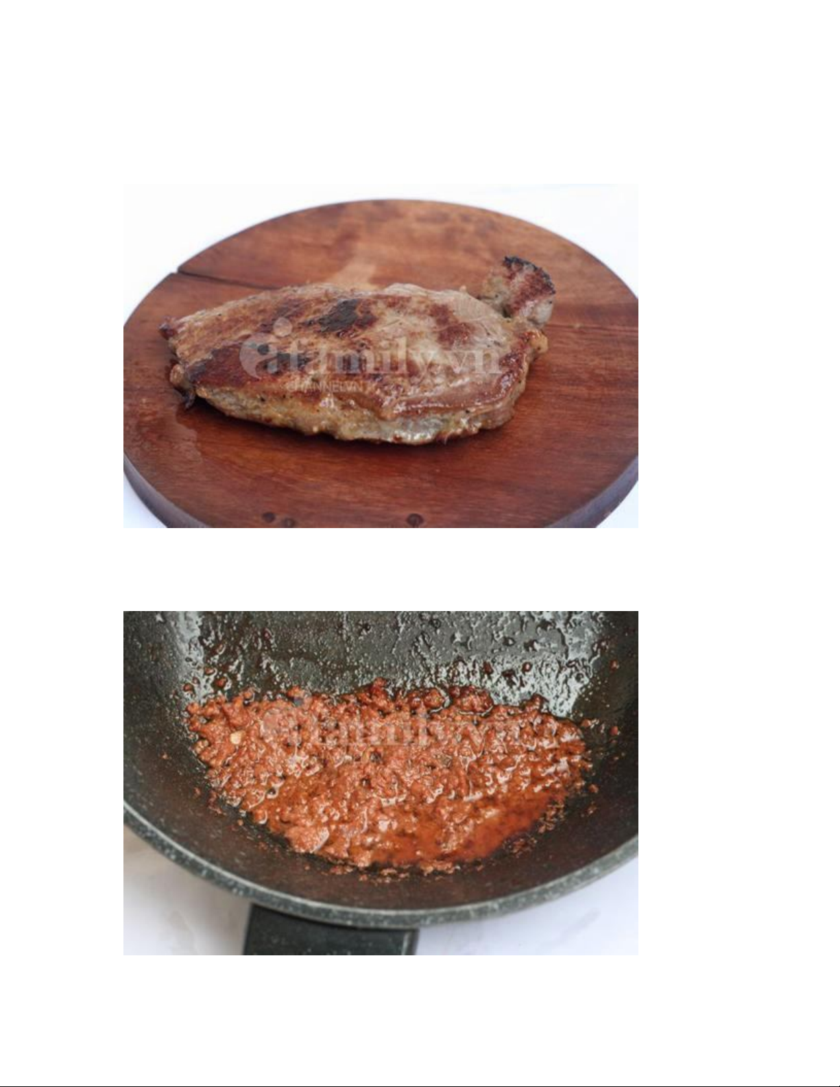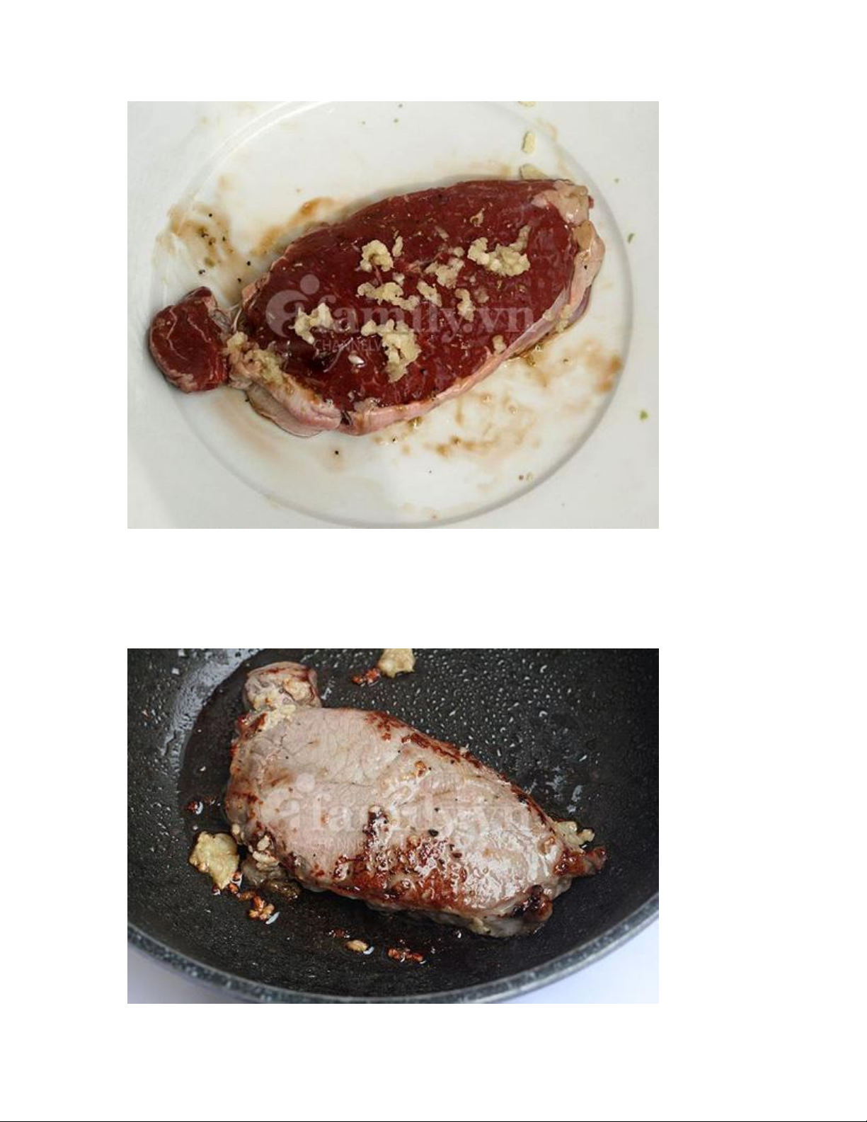 Đun nóng 1 chút dầu ăn rồi thả thịt bò vào áp chảo khoảng 5’ mỗi mặt cho
